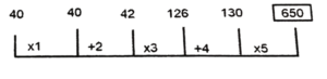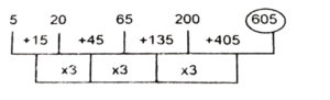 Series (SSC MTS 2021 Tier – 1)Total Questions: 1211. 40, 40, 42, 126, 130, ? [S.S.C MTS 08/10/2021 (Afternoon)](a) 260(b) 275(c) 452(d) 650Correct Answer: (d) 650Solution:The pattern followed here is :Hence, "650" is the correct answer.12. 5, 20, 65, 200, ? [S.S.C MTS 08/10/2021 (Evening)](a) 575(b) 605(c) 1005(d) 1055Correct Answer: (b) 605Solution:The pattern followed here is :Hence, "605" is the correct answer.Submit Quiz« Previous12