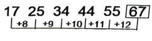 2. 17, 25, 34, 44, 55, ? [S.S.C MTS 05/07/2022 (Morning)]