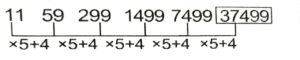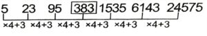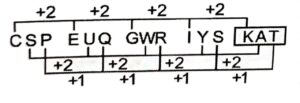 Series (SSC MTS 2023 Tier – 1) (Part – II)Total Questions: 6011. 5, 23, 95, ?, 1535, 6143, 24575 [S.S.C MTS 11/09/2023 (1st Shift)](a) 383(b) 347(c) 312(d) 361Correct Answer: (a) 383Solution:The pattern followed here is :Hence, "383" is the correct answer.12. CSP, EUQ, GWR, IYS, ? [S.S.C MTS 11/09/2023 (1st Shift)](a) JBS(b) LBT(c) KAT(d) JARCorrect Answer: (c) KATSolution:The pattern followed here is :Hence, "KAT" is the correct answer.13. BK _ Y _ KUTR _ POMKK _ HK _ E [S.S.C MTS 11/09/2023 (1st Shift)](a) WKBFP(b) WBHZP(c) ZWKJF(d) ZKWLFCorrect Answer: (c) ZWKJFSolution:The pattern followed here is :BK _ Y _ KUTR _ POMKK _ HK _ EZWKJF → BKZY / WKUT / RKPO / MKKJ / HKFE1st, 3rd, and 4th letters are decreasing by 5 and the 2nd letter is the same.Hence, "ZWKJF" is the correct answer.14. 11, 59, 299, 1499, 7499, ? [S.S.C MTS 11/09/2023 (1st Shift)](a) 38199(b) 37699(c) 37499(d) 38499Correct Answer: (c) 37499Solution:The pattern followed here is :Hence, "37499" is the correct answer.15. 14, 47, 146, 443, 1334, ? [S.S.C MTS 11/09/2023 (2nd Shift)](a) 4007(b) 4171(c) 4078(d) 4001Correct Answer: (a) 4007Solution:The pattern followed here is :Hence, "4007" is the correct answer.16. _ TU _ T _ TT _ _ TU [S.S.C MTS 11/09/2023 (2nd Shift)](a) UTUTU(b) TTUUT(c) UUTUU(d) TUTUUCorrect Answer: (b) TTUUTSolution:The pattern followed here is :_ TU _ T _ TT _ _ TUTTUUT → TTU / TTU / TTU / TTUHence, "TTUUT" is the correct answer.17. HVP, JZO, LDN, NHM, ? [S.S.C MTS 11/09/2023 (2nd Shift)](a) PLL(b) NLN(c) MLM(d) OLLCorrect Answer: (a) PLLSolution:The pattern followed here is :Hence, "PLL" is the correct answer.18. G _ KPN _ RPUXY _ BE _ PI _ MP [S.S.C MTS 11/09/2023 (2nd Shift)](a) QJLDP(b) JPFLC(c) JQPFL(d) QFDPACorrect Answer: (c) JQPFLSolution:The pattern followed here is :G _ KPN _ RPUXY _ BE _ PI _ MPJQPFL → GJKP / NQRP / UXYP / BEFP / ILMP First, second, and third letters increase by 7, and the 4th letter remains the same.Hence, "JQPFL" is the correct answer.19. LAT, KYS, JWR, IUQ, ? [S.S.C MTS 11/09/2023 (3rd Shift)](a) GRQ(b) HSP(c) ISP(d) HQRCorrect Answer: (b) HSPSolution:The pattern followed here is :Hence, "HSP" is the correct answer.20. DFZ _ D _ CJ DF _ I _ FIHDF _ G [S.S.C MTS 11/09/2023 (3rd Shift)](a) DLFFK(b) KFFDL(c) KDFLF(d) FDFKLCorrect Answer: (b) KFFDLSolution:The pattern followed here is :DFZ _ D _ CJ DF _ I _ FIHDF _ GKFFDL → DFZK / DFCJ / DFFI / DFIH / DFLGThe 1st and 2nd letters are not changing. The 3rd letter is increasing by 3, and the 4th letter is decreasing by 1.Hence, "KFFDL" is the correct answer.Submit Quiz« Previous123456Next »