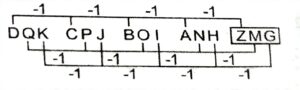 The 2nd letter is decreasing by 2 and the 3rd letter is increasing by 3. The 1st and 4th letters are not changing.