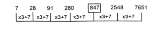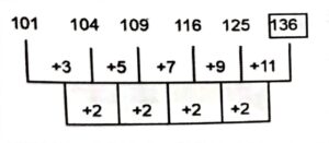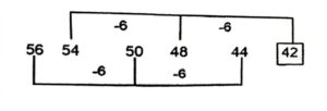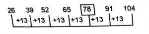 Series (SSC MTS 2023 Tier – 1) (Part – I)Total Questions: 5041. 64, 61, 55, 46, 34, ? [S.S.C MTS 06/09/2023 (1st Shift)](a) 19(b) 24(c) 15(d) 21Correct Answer: (a) 19Solution:The pattern followed here is :Hence, "19" is the correct answer.42. 77, 754, ?, 75224, 752224, 7522224, 75222224 [S.S.C MTS 06/09/2023 (1st Shift)](a) 7544(b) 7254(c) 7425(d) 7524Correct Answer: (d) 7524Solution:The pattern followed here is :Hence, "7524" is the correct answer.43. 26, 39, 52, 65, ?, 91, 104 [S.S.C MTS 06/09/2023 (2nd Shift)](a) 78(b) 79(c) 81(d) 80Correct Answer: (a) 78Solution:The pattern followed here is :Hence, "78" is the correct answer.44. 7, 28, 91, 280, ?, 2548, 7651 [S.S.C MTS 06/09/2023 (2nd Shift)](a) 823(b) 871(c) 861(d) 847Correct Answer: (d) 847Solution:The pattern followed here is :Hence, "847" is the correct answer.45. 11, 39, 123, 375, 1131, ? [S.S.C MTS 06/09/2023 (2nd Shift)](a) 3399(b) 3499(c) 3187(d) 3417Correct Answer: (a) 3399Solution:The pattern followed here is :Hence, "3399" is the correct answer.46. ESP, CRN, AQL, YPJ, ? [S.S.C MTS 06/09/2023 (2nd Shift)](a) YMG(b) YNI(c) WOH(d) ZNGCorrect Answer: (c) WOHSolution:The pattern followed here is :Hence, "WOH" is the correct answer.47. 56, 54, 50, 48, 44, ? [S.S.C MTS 06/09/2023 (3rd Shift)](a) 40(b) 38(c) 42(d) 36Correct Answer: (c) 42Solution:The pattern followed here is :Hence, "42" is the correct answer.48. 101, 104, 109, 116, 125, ? [S.S.C MTS 06/09/2023 (3rd Shift)](a) 136(b) 134(c) 135(d) 133Correct Answer: (a) 136Solution:The pattern followed here is :Hence, "136" is the correct answer.49. 175, 180, 185, 190, 195, ? [S.S.C MTS 06/09/2023 (3rd Shift)](a) 207(b) 204(c) 201(d) 200Correct Answer: (d) 200Solution:The pattern followed here is :Hence, "200" is the correct answer.50. ICU, FAT, CYS, ZWR, ? [S.S.C MTS 08/09/2023 (1st Shift)](a) VTR(b) VST(c) WVS(d) WUQCorrect Answer: (d) WUQSolution:The pattern followed here is :Hence, "WUQ" is the correct answer.Submit Quiz« Previous12345