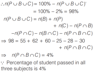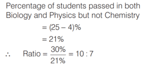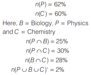 In an examination of class XII, 55% students passed in Biology, 62% passed in Physics, 60% passed in Chemistry, 25% passed in Physics and Biology, 30% passed in Physics and Chemistry, 28% passed in Biology and Chemistry. Only 2% failed in all the subjects.