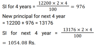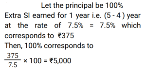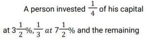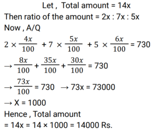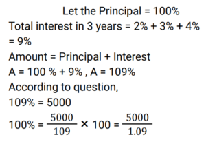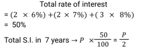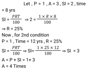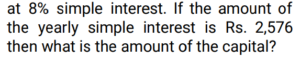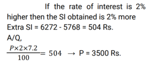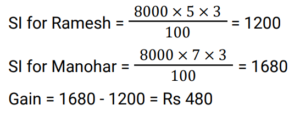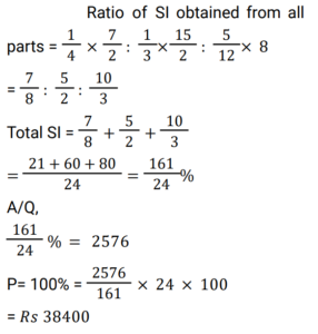 Simple Interest (Railway Maths) (Part – I)Total Questions: 5011. Ramesh sharma borrows Rs 8,000 for 3 years at 5% p.a. simple interest. He lends it to Manohar at 7% p.a. for 3 years. Find his gain? [NTPC CBT - I 08/01/2021 (Evening) ](a) Rs. 580(b) Rs. 480(c) Rs. 450(d) Rs. 460Correct Answer: (b) Rs. 480Solution:12. Balaji invested 1/7 of his total investment at 4%, 1/2 at 5% and the rest at 6% for 1 year. He received a total interest of Rs.730. What was the total sum invested? [NTPC CBT - I 21/01/2021 (Evening) ](a) Rs.24,000(b) Rs.14,000(c) Rs. 7,000(d) Rs, 38,000Correct Answer: (b) Rs.14,000Solution:13. How much money (in Rs.) at compound interest will amount to Rs. 5,000 in 3 years if the rate of interest is 2% for the 1st year, 3% for the 2nd year and 4% for the 3rd year? [NTPC CBT - I 16/02/2021 (Morning) ](a) 5000/1.2 × 1.3 × 1.4(b) 5000(c) 5000/1.09(d) 5000/1.24Correct Answer: (c) 5000/1.09Solution:14. Mr Ram invests an amount of Rs. 12,200 at the rate of 2% per annum for 4 years to obtain a simple interest. Later he invests the principal as well as the amount obtained as simple interest for another 4 years at the same rate of interest. What amount of simple interest will he get at the end of the last 4 years? [NTPC CBT - I 23/02/2021 (Morning) ](a) Rs.1,054.00(b) Rs.1,056.07(c) Rs.1,054.08(d) Rs.1,055.08Correct Answer: (c) Rs.1,054.08Solution:15. A man invests money in three different schemes for 6 years, 10 years and 12 years, at 10%, 12% and 15% simple interest , respectively. If at the completion of each scheme, he gets the same interest then the ratio of the respective investments is: [NTPC CBT - I 01/03/2021 (Morning) ](a) 7 : 4 : 3(b) 5 : 4 : 3(c) 6 : 3 : 2(d) 4 : 3 : 2Correct Answer: (c) 6 : 3 : 2Solution:16. Find the answer of given question? [NTPC CBT - I 14/03/2021 (Morning) ](a) Rs. 36800(b) Rs. 39500(c) Rs. 38400(d) Rs. 27600Correct Answer: (c) Rs. 38400Solution:17. If a sum invested at simple interest triples itself in 8 years, how many times of itself will it be in 12 years? [NTPC CBT - I 15/03/2021 (Morning)](a) 4 times(b) 3.5 times(c) 3 times(d) 5 timesCorrect Answer: (a) 4 timesSolution:18. A sum of money when invested for 7.2 years gives Rs 5,768 as the amount on maturity. If the Simple rate of Interest was 2% per annum more than what it was, the amount on maturity would have been Rs 6,272. The original sum invested was: [NTPC CBT - I 23/07/2021 (Morning)](a) Rs. 3,500(b) Rs. 4,000(c) Rs. 3,250(d) Rs. 3,750Correct Answer: (a) Rs. 3,500Solution:19. The Simple Interest for the first 2 years is 6%, next 2 years is 7% and for any number of years exceeding 4 years is 8%. Find the total interest on a principal ‘P’ at the end of 7 years. [RRB JE 31/05/2019 (Afternoon)](a) 3P/2(b) P/2(c) P(d) 2PCorrect Answer: (b) P/2Solution:20. A sum of money was invested at the rate of 7.5% simple interest per annum for 4 years. If the investment was for 5 years, the interest earned would have been ₹375 more. What was the initial sum invested? [RRB ALP Tier-I 09/08/2018 (Afternoon)](a) ₹4,500(b) ₹5,000(c) ₹4,750(d) ₹3,750Correct Answer: (b) ₹5,000Solution:Submit Quiz« Previous12345Next »