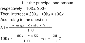 3. After 55 years, a sum invested at simple interest at the rate of r percent becomes twice of itself. What is the value of 'r'? [SSC MTS 10/05/2023 (Morning)]