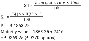 5. What is the maturity value of Rs.7416 at the end of 3 years at 8.33% simple interest? (approx) [SSC MTS 11/05/2023 (Evening)]