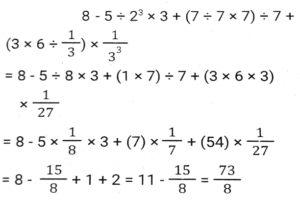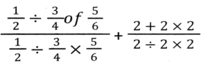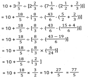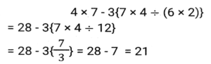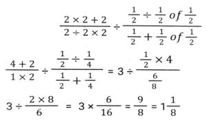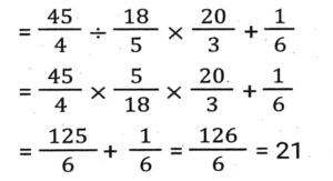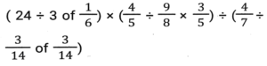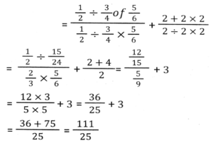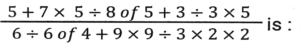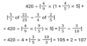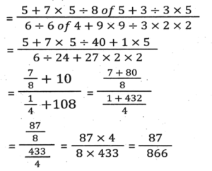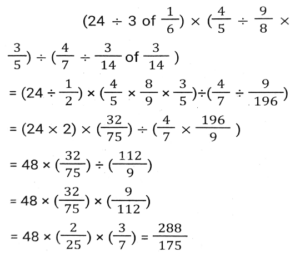 Simplification (Part-2)Total Questions: 5011. Simplify the given expression. [SSC CHSL 03/07/20249 (3rd Shift)](a) 73/9(b) 73/27(c) 73/21(d) 73/8Correct Answer: (d) 73/8Solution:12. Simplify [SSC CHSL 04/07/2024 (2nd Shift)](a) 27/55(b) 77/5(c) 55/27(d) 5/77Correct Answer: (b) 77/5Solution:13. Simplify [SSC CHSL 04/07/2024 (3rd Shift)](a) 25/11(b) 64/21(c) 64/11(d) 25/21Correct Answer: (b) 64/21Solution:14. Simplify [SSC CHSL 05/07/2024 (2nd Shift)](a) 111/25(b) 121/25(c) 75/36(d) 4Correct Answer: (a) 111/25Solution:15. Simplify the following expression. [SSC CHSL 08/07/2024 (1st Shift)]4 × 7 - 3 {7 × 4 ÷ (6 × 2)}(a) 12(b) 19(c) 21(d) 4Correct Answer: (c) 21Solution:16. What is the value of the following expression? [SSC CHSL 08/07/2024 (3rd Shift)](a) 127(b) 139(c) 107(d) 89Correct Answer: (c) 107Solution:17. Solve [SSC CHSL 08/07/2024 (4th Shift)](a)(b)(c)(d)Correct Answer: (c)Solution:18. What is the value of the following expression. [SSC CHSL 09/07/2024 (2nd Shift)](a) 379/179(b) 579/459(c) 363/553(d) 288/175Correct Answer: (d) 288/175Solution:19. The vlaue of..... [SSC CHSL 09/07/2024 (3rd Shift)](a) 67/859(b) 87/866(c) 97/881(d) 77/861Correct Answer: (b) 87/866Solution:20. Simplify the following expression. [SSC CHSL 09/07/2024 (4th Shift)](a) 19(b) 21(c) 23(d) 25Correct Answer: (b) 21Solution:Submit Quiz« Previous12345Next »