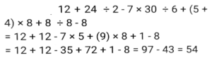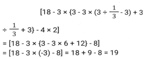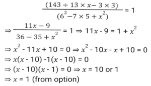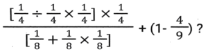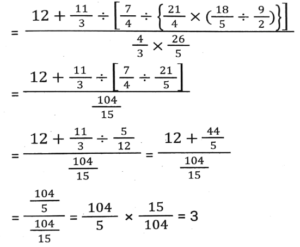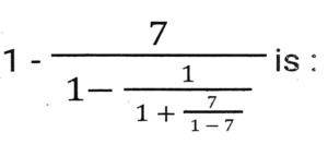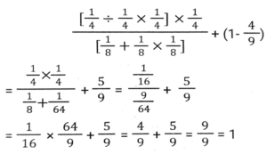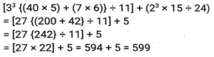 Simplification (Part-2)Total Questions: 5021. The value of [3³{(40 × 5) + (7 × 6)} ÷ 11] + (2³ × 15 ÷ 24) is: [SSC CHSL 10/07/2024 (3rd Shift) ](a) 559(b) 595(c) 599(d) 959Correct Answer: (c) 599Solution:22. If '÷' means '×', '×' means '÷', '+' means '-', '-' means '+', then 47 ÷ (10 × 5) + (4 - 5) - 6 is: [SSC CHSL 10/07/2024 (4th Shift)](a) 100(b) 59(c) 79(d) 91Correct Answer: (d) 91Solution:23. What is the value of..... [SSC CHSL 11/07/2024 (1st Shift) ](a) 1(b) 0(c) 3(d) 2Correct Answer: (a) 1Solution:24. Simplify the following expression. [SSC CPO 27/06/2024 (1st Shift)](a)(b)(c)(d)Correct Answer: (d)Solution:25. Find the value of [18 - 3 × {3 - 3 × (3 ÷ 1/3 - 3) + 3 ÷1/3 + 3} - 4 × 2]. [SSC CPO 27/06/2024 (1st Shift)](a) 18(b) 19(c) 12(d) 15Correct Answer: (b) 19Solution:26. Find the value of 12 + 24 ÷ 2 - 7 × 30 ÷ 6 + (5 + 4) × 8 + 8 ÷ 8 - 8. [SSC CPO 27/06/2024 (1st Shift)](a) 45(b) 85(c) 54(d) 58Correct Answer: (c) 54Solution:27. The possible value of x satisfying [SSC CPO 27/06/2024 (1st Shift)](a) 1(b) 3(c) 2(d) 4Correct Answer: (a) 1Solution:28. Find the value of [SSC CPO 27/06/2024 (2nd Shift)](a) 5(b) 3(c) 1(d) 2Correct Answer: (b) 3Solution:29. Simplifiy the following expression. [SSC CPO 27/06/2024 (2nd Shift)]25 × 25 + 9 × 9 + 6 × 6 + 2 × 25 × 9 + 2 × 9 × 6 + 2 × 25 × 6(a) 900(b) 1200(c) 1600(d) 2500Correct Answer: (c) 1600Solution:30. The value of.... [SSC CPO 27/06/2024 (2nd Shift)](a) 2(b) 0(c) 1(d) -1Correct Answer: (b) 0Solution:Submit Quiz« Previous12345Next »