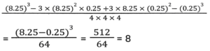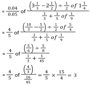Simplification (Part-3)Total Questions: 5011. Simplify the following expression. [Graduate Level 20/06/2024 (Shift-3)](a) 0.9(b) 0.7(c) 0.3(d) 0.4Correct Answer: (a) 0.9Solution:12. Simplify the following expression. [Graduate Level 21/06/2024 (Shift-3)](a) 6(b) 4(c) 2(d) 8Correct Answer: (d) 8Solution:13. Simplify the given expression. [Graduate Level 21/06/2024 (Shift-3)](a) 14.5(b) 20.9(c) 17.6(d) 21.9Correct Answer: (d) 21.9Solution:14. Simplify the given expression. [Graduate Level 24/06/2024 (Shift-3)](a) 36(b) 30(c) 32(d) 34Correct Answer: (c) 32Solution:15. Simplify the expression. [Graduate Level 25/06/2024 (Shift-3)]15 × 15 × 15 + 3 × 15 × 12 × 12 - 3 × 15 × 15 × 12 - 12 × 12 × 12(a) 36(b) 9(c) 18(d) 27Correct Answer: (d) 27Solution:16. Simplify the following expression: [Graduate Level 26/06/2024 (Shift-4)](a) 2(b) 1(c) -2(d) -1Correct Answer: (b) 1Solution:17. Simplify [SSC CHSL Tier II (02/11/2023)](a) 8³ × 10⁻⁸(b) 8³ × 10⁻⁹(c) 8⁴ × 10⁻⁹(d) 8⁴ × 10⁻⁸Correct Answer: (c) 8⁴ × 10⁻⁹Solution:18. Simplify : [SSC CHSL Tier II (10/01/2024)](a) 56(b) 42(c) ∛42(d) 42³Correct Answer: (b) 42Solution:19. Find the value of.... [SSC CGL Tier II (26/10/2023)](a) 31/66(b) 31/44(c) 33/64(d) 33/31Correct Answer: (a) 31/66Solution:20. Evaluate [SSC CPO 03/10/2023 (1st Shift)](a) 5(b) 0.3(c) 3(d) 0.03Correct Answer: (c) 3Solution:Submit Quiz« Previous12345Next »