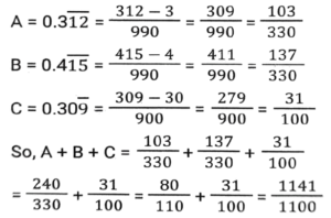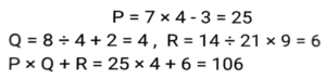 Simplification (Part-4)Total Questions: 3511. Find the value of A + B + C = ? [SSC CGL Tier II (08/08/2022)](a) 1141/1100(b) 1097/1100(c) 1211/1100(d) 1043/1100Correct Answer: (a) 1141/1100Solution:12. If √5 = 2.24, then find the value of... [Graduate Level 04/08/2022 (Shift-4)](a) 0.62(b) 0.59(c) 0.68(d) 0.55Correct Answer: (a) 0.62Solution:13. Find the value of : 13³ + (-8)³ + (-50)³ [Higher Secondary 01/08/2022 (Shift-3)](a) 1052(b) 1152(c) 1562(d) 1560Correct Answer: (d) 1560Solution:14. Select the number that will come in place of the question mark (?) in the mathematical statement. [SSC MTS 08/07/2022 (Afternoon)](0.064)¹²³ ÷ (0.16)⁴⁷ × (0.4)³⁴ × (0.4)²⁹ = (0.4)?(a) 350(b) 320(c) 338(d) 341Correct Answer: (c) 338Solution:15. If P = 7 × 4 - 3, Q = 8 ÷ 4 + 2, and R = 14 ÷ 21 × 9, then what is the value of P × Q + R ? [SSC MTS 25/07/2022 (Morning)](a) 96(b) 112(c) 108(d) 106Correct Answer: (d) 106Solution:16. Simplify the expression. [SSC CHSL 24/05/2022 (Morning)](36p² + 49q²) (6p +7q) (6p - 7q)(a) 1296p⁴ + 2401q⁴(b) 36p⁴ - 49q⁴(c) 1296p⁴ - 2401q⁴(d) 36p⁴ + 49q⁴Correct Answer: (c) 1296p⁴ - 2401q⁴Solution:17. Simplify : [SSC CHSL 24/05/2022 (Afternoon)](a) 3p - q(b) p + 2q(c) 3p + 2q(d) 2p + 2qCorrect Answer: (d) 2p + 2qSolution:18. Find the value of... [SSC CHSL 01/06/2022 (Morning)](a) 9(b) 3(c) 729(d) 81Correct Answer: (a) 9Solution:19. Simplify the following expression. [SSC CHSL 01/06/2022 (Afternoon)](a) 34/7(b) 10/7(c) 20/7(d) 44/7Correct Answer: (b) 10/7Solution:20. If a, b, c, are positive real numbers, what is the value of [SSC CHSL 03/06/2022 (Evening)](a) 2(b) 3(c) 1(d) 4Correct Answer: (c) 1Solution:Submit Quiz« Previous1234Next »