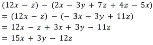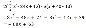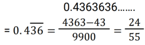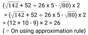 Simplification (Railway Maths) (101 to 150)Total Questions: 5021. The value of 1/4 + 2/5 ÷ [{2 1/5 − 2} × 5] − 2/3 × 3/5 is: [Group D 29/08/2022 (Morning)](a) 3/5(b) 2/3(c) 1/4(d) 5/6Correct Answer: (c) 1/4Solution:22. The fraction equivalent to 0.4363636...... is:(a) 24/55(b) 236/99(c) 42/99(d) 42/100Correct Answer: (a) 24/55Solution:23. Subtract the sum of 2x − 3y + 7z and 4z − 5x from 12x − z. [Group D 29/08/2022 (Morning)](a) 15x + 3y − 12z(b) x + 12y − 12z(c) 3x + 3y − 3z(d) 4x + 7yCorrect Answer: (a) 15x + 3y − 12zSolution:24. Find the value of √9604. [Group D 29/08/2022 (Afternoon)](a) 74(b) 98(c) 89(d) 72Correct Answer: (b) 98Solution:√9604 = √(2 × 2 × 7 × 7 × 7 × 7) = 2 × 7 × 7 = 9825. The value of 3/7 + 2/7 + 1/14 + 2/7 - 3? [Group D 29/08/2022 (Afternoon) ](a) 27/14(b) -27/14(c) 13/14(d) -13/14Correct Answer: (b) -27/14Solution:26. The value of 0.2 × 0.2 × 0.2 − 0.02 × 0.02 × 0.02/ 2 × 2 × 2 = ? [Group D 29/08/2022 (Afternoon) ](a) 0.0090(b) 0.000999(c) 0.999(d) 0.00999Correct Answer: (b) 0.000999Solution:27. Simplify x(2x - 5) + 6(x² - 4) + 18? [Group D 29/08/2022 (Afternoon) ](a) 8x² + 5x + 6(b) 8x² + 5x − 6(c) 8x² − 5x + 6(d) 8x² − 5x − 6Correct Answer: (d) 8x² − 5x − 6Solution:x(2x - 5) + 6(x² - 4) + 18 = 2x² - 5x + 6x² - 24 + 18 = 8x² - 5x - 628. Simplify: 9991 × 10009? [Group D 29/08/2022 (Afternoon)](a) 91,999,919(b) 99,999,19(c) 99,999,919(d) 99,999,99Correct Answer: (c) 99,999,919Solution:9991 × 10009 = (10000 − 9) × (10000 + 9) = 100000000 − 81 = 99,999,91929. Simplify 2(3/2 x² − 24x + 12) − 3(x² + 4x − 13)? [Group D 29/08/2022 (Evening)](a) −60x + 63(b) 60x − 63(c) 60x + 63(d) −60x − 63Correct Answer: (a) −60x + 63Solution:30. Which of the following options is the closest approximate value which will come in place of the question mark (?) in the following equation?(√142 + 52 ÷ 26 × 5 − √80) × 2 = ?(a) 32(b) 30(c) 26(d) 20Correct Answer: (c) 26Solution:Submit Quiz« Previous12345Next »