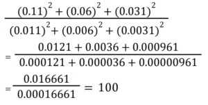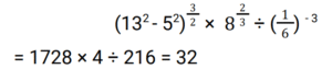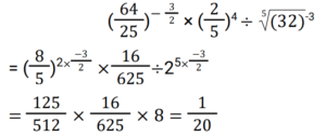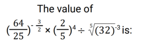 Simplification (Railway Maths) (101 to 150)Total Questions: 5041. The simplified value of (0.11)² + (0.06)² + (0.031)² / (0.011)² + (0.006)² + (0.0031)² is: [Group D 01/09/2022 (Evening)](a) 10(b) 1(c) 1000(d) 100Correct Answer: (d) 100Solution:42. The positive square root of (34² − 16²) is: [Group D 02/09/2022 (Morning)](a) 60(b) 40(c) 30(d) 50Correct Answer: (c) 30Solution:43. Simplify the given expression: [Group D 02/09/2022 (Morning)](a) 12(b) 24(c) 32(d) 16Correct Answer: (c) 32Solution:44. Find the answer of given question? [Group D 02/09/2022 (Morning) ](a)(b)(c)(d)Correct Answer: (c)Solution:45. Find the answer of given question? [Group D 02/09/2022 (Afternoon) ](a)(b)(c)(d)Correct Answer: (d)Solution:46. The value of √74529 is: [Group D 02/09/2022 (Evening)](a) 239(b) 243(c) 273(d) 259Correct Answer: (c) 273Solution:47. If a = 5, then √(4a² − 4a + 1) + 6a is? [Group D 02/09/2022 (Evening)](a) 69(b) 59(c) 49(d) 39Correct Answer: (d) 39Solution:48. Find the answer of given question? [Group D 05/09/2022 (Morning) ](a) 8/25(b) 1/20(c) 1/5(d) 2/5Correct Answer: (b) 1/20Solution:49. Simplify the equation? [Group D 05/09/2022 (Afternoon) ](a)(b)(c)(d)Correct Answer: (b)Solution:50. Simplify the equation? [Group D 05/09/2022 (Evening) ](a) 88/165(b) 164/495(c) 229/990(d) 219/495Correct Answer: (c) 229/990Solution:Submit Quiz« Previous12345