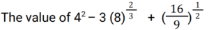 Simplification (Railway Maths) (201 to 250)Total Questions: 5011. Using the fact that √18496 = 136, find the value of √184.96 − √1.8496. [Group D 18/09/2022 (Morning)](a) 12.24(b) 18.49(c) 10(d) 14.96Correct Answer: (a) 12.24Solution:√18496 = 136 Then,√184.96 − √1.8496= 13.6 − 1.36= 12.2412. The value of 60% of 28% of 250 = ______. [Group D 18/09/2022 (Afternoon)](a) 42(b) 56(c) 22(d) 68Correct Answer: (a) 42Solution:60% of 28% of 250= (60/100) × (28/100) × 250= 4213. Find the value of 4⁻⁵ ÷ 4⁷ × 4⁻⁶? [Group D 18/09/2022 (Afternoon)](a) 4⁻¹⁸(b) 4⁻²⁰(c) 4⁻¹⁶(d) 4⁻¹⁴Correct Answer: (a) 4⁻¹⁸Solution:4⁻⁵ ÷ 4⁷ × 4⁻⁶ = 4⁽⁻⁵⁻⁷⁻⁶⁾= 4⁻¹⁸14. Find the value of [(12 ÷ 4/3) × {6 ÷ 4 × (12 − 7)/6} ÷ {4 × 6 ÷ 3}]? [Group D 18/09/2022 (Afternoon) ](a)(b)(c)(d)Correct Answer: (c)Solution:15. Simplify the question? [Group D 18/09/2022 (Afternoon) ](a)(b)(c)(d)Correct Answer: (d)Solution:16. The value of 2405 ÷ 13 × 6 + 35 is: [Group D 18/09/2022 (Evening) ](a) 1035(b) 1305(c) 1235(d) 1145Correct Answer: (d) 1145Solution:2405 ÷ 13 × 6 + 35 = 185 × 6 + 35 = 1110 + 35 = 114517. Simplify the question? [Group D 18/09/2022 (Evening) ](a) 5/17(b) 7/33(c) 8/21(d) 4/15Correct Answer: (d) 4/15Solution:18. The value of 16³ − 12³ is: [Group D 18/09/2022 (Evening)](a) 2388(b) 2368(c) 2378(d) 2358Correct Answer: (b) 2368Solution:19. What is 6⁰ × 4² × 2⁻⁴ ? [Group D 18/09/2022 (Evening)](a) 2(b) 4(c) 0(d) 1Correct Answer: (d) 1Solution:6⁰ × 4² × 2⁻⁴ = 1 × 16 × 1/16 = 120. Evaluate 0.1 × 0.1 × 0.1 + 0.02 × 0.02 × 0.02 / 0.2 × 0.2 × 0.2 + 0.04 × 0.04 × 0.04? [Group D 18/09/2022 (Evening)](a) 0.0125(b) 0.25(c) 0.5(d) 0.125Correct Answer: (d) 0.125Solution:Submit Quiz« Previous12345Next »