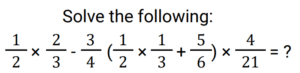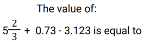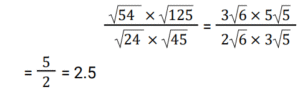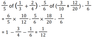 Simplification (Railway Maths) (351 to 400)Total Questions: 501. Simplify the equation? [RRB NTPC 28/12/2020 (Morning) ](a) 1/3(b) 3/4(c) 5/6(d) 1/12Correct Answer: (d) 1/12Solution:2. Simplify the maths problem? [RRB NTPC 28/12/2020 (Morning) ](a) 3.27(b) 3.12(c) 2.55(d) 5.73Correct Answer: (a) 3.27Solution:3. Simplify the maths problem? [RRB NTPC 28/12/2020 (Morning) ](a) 4√6(b) 4(c) 2√5(d) 2.5Correct Answer: (d) 2.5Solution:4. If P = 0.3 × 0.3 + 0.03 × 0.03 - 0.6 × 0.03 and Q = 0.54, then P/Q is equal to? [RRB NTPC 28/12/2020 (Evening) ](a) 4.5(b) 0.45(c) 4.05(d) 0.135Correct Answer: (d) 0.135Solution:5. Simplify the question? [RRB NTPC 28/12/2020 (Evening) ](a) 2(b) 1/3(c) 1/2(d) 4/21Correct Answer: (d) 4/21Solution:6. Simplify the question? [RRB NTPC 28/12/2020 (Evening) ](a) √3 + 2(b) 2 + 2√3(c) √3 - 2(d) 2 + 4√3Correct Answer: (b) 2 + 2√3Solution:7. If √2 + √x = √3, then the value of x is equal to? [RRB NTPC 28/12/2020 (Evening)](a) −2√6 − 5(b) 2√6 − 5(c) 5 + 2√6(d) 5 − 2√6Correct Answer: (d) 5 − 2√6Solution:8. If √4624 = 68, then the value of √46.24 + √0.4624 + √0.004624 is? [RRB NTPC 29/12/2020 (Morning)](a) 7.648(b) 7.548(c) 7.854(d) 7.458Correct Answer: (b) 7.548Solution:9. Simplify : [RRB NTPC 29/12/2020 (Morning)]62 ÷ 5 − (8/9 × 18/7) × 7/5 + 5/4 × 16/25(a) 12(b) 15(c) 5(d) 10Correct Answer: (d) 10Solution:10. Find the value of √150 − √54 − √24 [RRB NTPC 29/12/2020 (Morning)](a) 1(b) 72(c) 0(d) 75Correct Answer: (c) 0Solution:Submit Quiz12345Next »