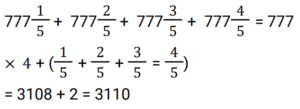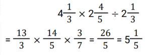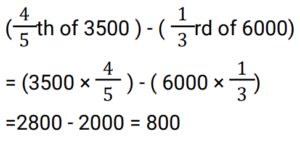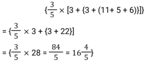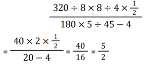 Simplification (Railway Maths) (501 to 550)Total Questions: 5031. By how much is 4/5th of 3500 more than 1/3rd of 6000? [RRB NTPC 02/03/2021 (Morning) ](a) 2800(b) 2000(c) 1800(d) 800Correct Answer: (d) 800Solution:32. Find the answer of given equation? [RRB NTPC 02/03/2021 (Evening) ](a)(b)(c)(d)Correct Answer: (b)Solution:33. Find the answer of given equation? [RRB NTPC 03/03/2021 (Morning) ](a)(b)(c)(d)Correct Answer: (b)Solution:34. If 65 × 65 = 4225, then the value of 6.5 × 6.5 = ? [RRB NTPC 03/03/2021 (Morning) ](a) 42.25(b) 42025(c) 422.5(d) 0.004225Correct Answer: (a) 42.25Solution:65 × 65 = 4225 Then , 6.5 × 6.5 = 42.2535. Find the answer of given question? [RRB NTPC 03/03/2021 (Morning) ](a) 3110(b) 3018(c) 3000(d) 3108Correct Answer: (a) 3110Solution:36. Simplify: [RRB NTPC 03/03/2021 (Evening)](320 ÷ 8 × 8 ÷ 4 × 1/2) / (180 × 5 ÷ 45 − 4)(a) 2/5(b) 10(c) 5/2(d) 5/8Correct Answer: (c) 5/2Solution:37. Simplify: 9 + (45 ÷ 9) − 8 × (−4) [RRB NTPC 03/03/2021 (Evening)](a) 46(b) −171(c) 38(d) 8Correct Answer: (a) 46Solution:9 + (45 ÷ 9) - 8 × (-4) = 9 + 5 + 32 = 4638. The value of {3/5 × [3 + {3 + (11 + 5 + 6)}]} is: [RRB NTPC 04/03/2021 (Morning) ](a)(b)(c)(d)Correct Answer: (b)Solution:39. The value of 27 × 4.15 + 30.8 ÷ 22 is: [RRB NTPC 04/03/2021 (Morning)](a) 113.45(b) 110.25(c) 126.05(d) 149.85Correct Answer: (a) 113.45Solution:27 × 4.15 + 30.8 ÷ 22= 27 × 4.15 + 1.4= 112.05 + 1.4= 113.4540. If (3ˣ)(3ʸ) = 9 and (25ˣ)(5ʸ) = 625, then what is (x, y)? [RRB NTPC 04/03/2021 (Morning)](a) (2, 4)(b) (2, 0)(c) (3, −5)(d) (1, 2)Correct Answer: (b) (2, 0)Solution:Submit Quiz« Previous12345Next »