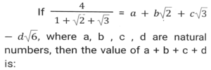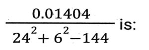 SimplificationTotal Questions: 5021. Solve [SSC CHSL 18/03/2020 (Morning)](a) 0(b) 2(c) 4(d) 1Correct Answer: (c) 4Solution:22. Solve [SSC CHSL 18/03/2020 (Morning)](a) 5(b) 6(c) 3(d) 4Correct Answer: (a) 5Solution:23. Simplify [SSC CGL 03/03/2020 (Morning)](a)(b)(c)(d)Correct Answer: (b)Solution:24. The value of [SSC CGL Tier II (13/09/2019)](a) 24.42(b) 24.24(c) 25.42(d) 25.48Correct Answer: (d) 25.48Solution:25. The value of.... [SSC CGL Tier II (12/09/2019)](a) -1(b) 1(c) 3(d) -3Correct Answer: (a) -1Solution:26. Simplify [SSC CGL Tier II11/09/2019](a)(b)(c)(d)Correct Answer: (d)Solution:27. Find the value [SSC MTS 07/08/2019 (Morning)](a) 25/2(b) 19/2(c) 23/2(d) 21/2Correct Answer: (d) 21/2Solution:28. Solve [SSC CHSL 10/07/2019 (Evening)](a) 1/3(b) 1/24(c) 1/72(d) 3Correct Answer: (d) 3Solution:29. The simplified value of..... [SSC CHSL 10/07/2019 (Evening)](a) 3 × 10⁻⁵(b) 6 × 10⁻⁵(c) 2.4 × 10⁻⁴(d) 3 × 10⁻⁴Correct Answer: (a) 3 × 10⁻⁵Solution:30. The simplified value of..... [SSC CHSL 09/06/2019 (Evening)](a) 1.0025(b) 1.0525(c) 1.0005(d) 1.0505Correct Answer: (b) 1.0525Solution:Submit Quiz« Previous12345Next »