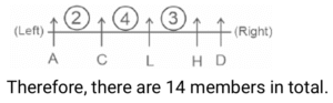 Sitting Arrangement – Railway Reasoning part – 2Total Questions: 501. A certain number of people are sitting in a row, facing the north. Only 7 persons sit between F and U. F is at one of the extreme ends of the row. Only 9 persons sit between H and U. Only 12 persons sit between E and H. E is at the extreme right end. H is at the 19th position from the extreme left end. H is 14 th from the extreme right end. If no other person is sitting in the row, what is the total number of persons seated? [Group - D 18/08/2022 ( Afternoon)](a) 31(b) 33(c) 32(d) 34Correct Answer: (c) 32Solution:Total number of people seated = 7 + 9 + 12 + 4 = 32.2. P, Q, R, S and T are sitting in a straight row, facing north. Neither Q nor S sit at the exact central position of the row. R is adjacent to S, while P and T are sitting at the extreme ends of the row. Who is sitting at the exact central position of the row? [Group - D 18/08/2022 (Afternoon)](a) Q(b) T(c) R(d) SCorrect Answer: (c) RSolution:(As all are facing towards the North direction). R is sitting at the exact central position of the row.3. Seven gift boxes, X, Y, Z, A, B, C and D are placed in a straight line next to each other facing north but not necessarily in the same order. Y is placed immediate right of B. X is placed as immediate neighbours of both D and A. C is placed immediate left of Z. B is placed second to the right of X. Y and C are placed immediate next to each other. Which gift box is placed at the right end of the row? [Group - D 18/08/2022 (Afternoon)](a) B(b) Z(c) Y(d) XCorrect Answer: (b) ZSolution:The gift box Z is placed at the right end of the row.4. Five friends A, B, C, D and E are sitting in a straight row, facing north. A is not at the exact center position of the row. C is second from one extreme end, while fourth from the other extreme end. B and D sit at the extreme ends of the row. Who is sitting at the exact centre position of the row? [Group - D 18/08/2022 (Evening)](a) D(b) A(c) C(d) ECorrect Answer: (d) ESolution:From the above figure, it can be concluded that E sits at the exact centre position of the row.5. Six students P, Q, R, S, T and U sit in a straight line, facing north. P and S are sitting at the extreme ends of the line. T is sitting adjacent to P, while U is sitting adjacent to S. Only one person sits between Q and S. Who is sitting adjacent to Q apart from R? [Group - D 22/08/2022 (Morning)](a) T(b) U(c) R(d) SCorrect Answer: (b) USolution:As per given instructions, we can arrange all six students in two ways. Here it can be clearly seen that Q is sitting adjacent to U apart from R.6. Eight lawyers with the initials A, K ,L, M, N, O, P and Q were sitting around a square table and were facing the centre. Four of them were sitting at the corners, while the other four were at the exact centre of the sides. L, at a corner, was to the immediate right of M and was diagonally opposite to A. Q, sitting at a corner, was next to both M and K. P was second to the left of A. N was not sitting diagonally opposite to M. Which lawyer was second to the left of K? [Group - D 22/08/2022 (Morning)](a) P(b) N(c) O(d) LCorrect Answer: (c) OSolution:All are facing the centre. Therefore, it can be clearly seen that O was sitting second to the left of K.7. Seven surgeons, W, X, Y, Z, A, B and C, were sitting around a square table, facing the center. Four of them were sitting at the corners while three were sitting at the exact center of the sides. One of the center of sides was empty. C, at one of the corners, was immediately next to both B and Y. Z was immediately next to both B and X. A was at the immediate right of X. Which surgeon was third to the right of W? [Group - D 22/08/2022 (Afternoon)](a) X(b) C(c) B(d) YCorrect Answer: (c) BSolution:All are facing the centre. Surgeon B was third to the right of W.8. Few birds (One each of Orange, Yellow, Black, Green, Grey, Red color and three White coloured) were sitting in a row facing north. The black bird was an immediate neighbor of both, the red and the grey bird. The yellow bird was sitting to the immediate right of the green bird. Only three birds were sitting between the orange and the red bird and all these three birds were white. The yellow bird sat third to the right of the black bird. Which color birds were sitting at the leftmost and rightmost ends of the row respectively? [Group - D 22/08/2022 (Evening)](a) Orange (Left) and Yellow (Right)(b) Grey (Left) and Red (Right)(c) White (Left) and Orange (Right)(d) Yellow (Left) and White (Right)Correct Answer: (a) Orange (Left) and Yellow (Right)Solution:From the above figure, it can be clearly seen that the leftmost bird is Orange while the rightmost bird is Yellow.9. A certain number of people are sitting in a row, facing north. D is to the immediate right of H. A is third to the left of C. Only three people sit between H and L. L is fifth to the right of C. D is at the extreme right end of the row. If no other person is sitting in the row, what is the total number of persons seated? [Group - D 22/08/2022 (Evening)](a) 16(b) 14(c) 18(d) 12Correct Answer: (b) 14Solution:10. L, M, N, O, P, Q and R, are sitting in a straight row, facing north. Only three people sit between Q and N. M and O are immediate neighbors. O is at the extreme right end of the row. R is at the immediate left of N. Who is at the fifth position from the left end of the row? [Group - D 22/08/2022 (Evening)](a) P(b) N(c) L(d) MCorrect Answer: (b) NSolution:Therefore, it can be clearly seen that N is at the 5th position from the left.Submit Quiz12345Next »