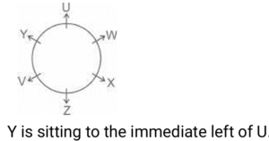 Sitting Arrangement – Railway Reasoning part – 2Total Questions: 5041. Six friends, A, B, C, D, E and F, are sitting in a circle facing the centre of the circle. A is 2nd to the right of E. Only one person sits between F and D. B and D are immediate neighbours. F is 3 rd to the right of B. C is second to the right of D. Who sits between D and F ? [Group - D 02/09/2022 (Evening)](a) D(b) B(c) C(d) ACorrect Answer: (d) ASolution:On arranging all the friends as per instructions, we get. From the above diagram we can say that A is the person who sits between D and F.42. A, B, C, D, W, X, Y and Z are sitting around a square table facing the center of the table. Some of them are sitting at the corners, while some are sitting at the middle of the sides. C sits third to the left of W. C sits at one of the corners. A does not sit at any of the corners. Y sits second to the right of A. A is not an immediate neighbor of C. Only three people sit between B and D. B is an immediate neighbor of Z. B does not sit at any of the middle of the sides. Who sits second to the left of Y ? [Group - D 02/09/2022 (Evening)](a) D(b) A(c) C(d) BCorrect Answer: (b) ASolution:By arranging all members as per given instructions we get , From the above diagram we can see that A is the person who is sitting second to the left of Y.43. Seven people, A, B, C, D, E, F and G, are sitting in a straight row, facing north. Only three people sit between A and D. Only two people sit to the left of A. G is not an immediate neighbour of D. G sits second to the right of E. F sits to the immediate right of C. Who sits at the extreme left end of the row? [Group - D 05/09/2022 (Morning)](a) G(b) A(c) E(d) BCorrect Answer: (d) BSolution:So from the above figure, it is clear that B sits at the extreme end of row.44. T, U, V, W, X, Y, Z and A are sitting in a straight row, facing north. Only Z sits between T and V. A sits at the extreme left end of the row. Only three people sit between Z and Y. Only X sits between V and W. T sits to the immediate right of U. Who sits to the immediate right of A ? [Group - D 05/09/2022 (Morning)](a) U(b) W(c) Z(d) TCorrect Answer: (a) USolution:As per the instructions given in the question, the order in which they sit will be as follows: U sits to the immediate right of A in the row as per the arrangement.45. 8 persons P, Q, R, S, T, U, V and W are seated around a square table facing the centre of the table in such a way that four of them sit at four corners of the table while the other four sit in the middle of each of the four sides. Out of the 8 persons, there are 3 females who are not an immediate neighbour to each other. U, who is a female, is the immediate neighbour of V and W. Q is the immediate neighbour of both S and V. R, a female, is second to the left of Q . V, a male, is 3rd to the left of T, who is a female. How many persons are seated between P and V when counted from the left of P? [Group - D 05/09/2022 (Afternoon)](a) One(b) Four(c) Three(d) TwoCorrect Answer: (c) ThreeSolution:From the above diagram, we can conclude 3 people were sitting between P and V.46. Six friends Richa, Shobhna, Urmila, Swarna, Purnima, and Kavya, are sitting on a bench in the park. They all are facing south. Only four persons are sitting between Purnima and Richa. Swarna is sitting third to the left of Purnima. Richa and Swarna are immediate neighbors of Kavya. Purnima and Shobhna are immediate neighbors of Urmila. Who sits fourth to the left of Urmila? [Group - D 05/09/2022 (Evening) ](a) Kavya(b) Richa(c) Shobhna(d) SwarnaCorrect Answer: (b) RichaSolution:Since all friends are facing South. The arrangement will be as follows : Therefore, it can be seen clearly that, Richa sits fourth to the left of Urmila.47. Seven persons, A, B, C, D, E, F and G are sitting in a straight line facing north. Only three persons are sitting between G and F. Only two persons are sitting to the left of G. B is not an immediate neighbor of F. B is sitting second to the right of D. C is sitting to the immediate right of E. Who is sitting at the left end of the row? [Group - D 06/09/2022 (Morning)](a) A(b) G(c) C(d) DCorrect Answer: (a) ASolution:By arranging the people according to the given instructions, we get As per above diagram we can say that A is sitting at the left end of the row.48. A, B, C, D, E, F, G and H are sitting around a square table facing the centre. Some of them were sitting at its corners, while some were sitting exactly in the middle of the sides. Only A sits between G and D. C sits fourth to the left of G. Only E sits between B and C. H was sitting to the immediate left of D. B was sitting second to the right of G. D was sitting at one of the corners. Who was sitting third to the right of D ? [Group - D 06/09/2022 (Morning)](a) E(b) F(c) C(d) BCorrect Answer: (b) FSolution:As per given question the following arrangement is possible,From the above diagram we can see that F is the person who sits third right of D.49. Some persons are sitting in a row facing north. S sits seventh to the right of L. K sits third to the right of J. L sits third to the right of K. If no one else is sitting in the row, then how many persons are sitting in the row? [Group - D 06/09/2022 (Morning)](a) 17(b) 14(c) 16(d) 15Correct Answer: (b) 14Solution:As per the given condition, people can sit in the following way : From the above fig., we can see that the number of persons in the row = 2 + 2 + 6 + 4 = 1450. Six friends U, V, W, X, Y, and Z are sitting in a circular arrangement and all are facing outside the circle. W is sitting to the immediate left of X and is second to the right of Y. X is sitting to the immediate left of Z. V is not an immediate neighbour of W. Who among the following is sitting to the immediate left of U ? [Group - D 06/09/2022 (Afternoon)](a) W(b) V(c) Y(d) ZCorrect Answer: (c) YSubmit Quiz« Previous12345
