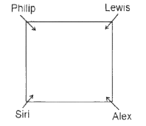 Sitting Arrangement – Railway Reasoning part – 5Total Questions: 5031. 7 friends Garima, Pakhi, Parul, Shikha, Ruby, Ana and Shomya are seated on a bench and are facing North. Shikha is an immediate neighbour of the person who is seated at one of the extreme ends. Only three people are seated between Ana and Ruby. Ruby is seated at one of the extreme ends of the bench. Ruby is an immediate neighbour of Pakhi. Parul is an immediate neighbour of both Shomya and Pakhi. Who is seated in the middle of the bench? [Level 2 (16/06/2022) Shift 1](a) Parul(b) Shomya(c) Shikha(d) AnaCorrect Answer: (b) ShomyaSolution: We can clearly see in the above diagram that Shomya is seated in the middle of the bench .32. Eight Friends are playing a game. K, L, M, and N are sitting in a straight line and are facing North. O, P, Q, and R are sitting on a parallel line and are facing South. Thus each of the persons sitting in a line, faces another person sitting in the parallel line. M faces a person who has two people sitting to his right. N is sitting between M and K. Q faces K. O is neither an immediate neighbour of P nor Q. Who amongst the following faces M? [Level 2 (16/06/2022) Shift 1](a) Q(b) O(c) P(d) RCorrect Answer: (d) RSolution:As per the directions of the question, we can arrange all 8 friends in this way. We can clearly see in the above figure that R faces M.33. In an office, four colleagues Lewis, Alex, Philip and Siri are sitting around a square table, and each of them are seated at different corners facing the centre of the table. Lewis is sitting to the immediate right of Alex. Philip is sitting to the immediate left of Siri. [Level 2 (16/06/2022) Shift 2]Which of the following pairs is sitting diagonally opposite each other?(a) Alex-siri(b) Lewis-Philip(c) Lewis-Alex(d) Philip-AlexCorrect Answer: (d) Philip-AlexSolution:We can clearly see in the above diagram that Philiip and Alex are sitting diagonally opposite to each other.34. Eight people F,G,N,O,S,T,Y and Z are sitting in a straight line. All of them are facing the North. F sits second from one of the extreme ends of the line. Only three people sit between F and G. N sits second to the right of G. As many people sit to the right of N as to the left of O. Only two people sit between O and S, Y sits at one of the positions to the left of S, T sits at one of the positions to the right of Z. [Level 2 (16/06/2022) Shift 2]How many people sit to the left of Z?(a) Three(b) Four(c) None(d) TwoCorrect Answer: (b) FourSolution:We can clearly see in the above sitting diagram that only 4 people sit to the left of Z.35. Six employees S,T,U,V,W,X are sitting around a circular table for a meeting, facing the centre, T is an immediate neighbour of both X and U. S is an immediate neighbour of both W and V. X is to the immediate left of V. Who is an immediate neighbour of both S and X? [Level 2 (16/06/2022) Shift 2](a) V(b) U(c) W(d) TCorrect Answer: (a) VSolution: We can clearly see in the above sitting diagram that V is an immediate neighbour of X and S.36. In an interview at a college, eight people, including the principal, are sitting in a square formation facing towards the centre. While four of them are seated at the corners, the remaining four are seated at the centre of each side of the square. Bahl is sitting diagonally opposite to Nikon. Nikon is sitting to the immediate right of the Eva. Pearson is an Immediate neighbour of Eva. Pearson is diagonally opposite to Charlie. Charlie is seated to the immediate left of the Principal, Philip is not sitting to the immediate right of Bahl. Only three people sit between Philip and Jakson. Who sits second to the left of Eva? [Level 2 (16/06/2022) Shift 3 ](a) Charlie(b) Jakson(c) Philip(d) BahlCorrect Answer: (b) JaksonSolution:We can clearly see in the above sitting diagram that Jackson sits second to the left of Eva.37. Few people are sitting in a row facing north. R is sitting to the left of 3 𝑟𝑑 U. Only two persons are sitting between R and T. Only one person sits between Q and U. Only one person sits to the right of U. Only V sits to the left of T. How many people are sitting in the row? [Level 2 (16/06/2022) Shift 3](a) 9(b) 7(c) 11(d) 10Correct Answer: (a) 9Solution:According to the question we can arrange all the people in this type of diagram. In the above diagram we can clearly see that all 9 people are sitting in this row.38. Eight friends, A, B, C, D, E, F, G and H are sitting around a square table. Four of them are sitting at four corners of the table and are facing the centre. The other four are sitting at the middle of each of the four sides and are facing opposite to the centre. E is facing the centre and is not an immediate neighbour of G. A is facing centre and is sitting at the third position from the right of G. D is sitting to the immediate right of B. B is facing the centre while C is not an immediate neighbour of A. There is only one person sitting between G and H. [Level 3 (17/06/2022) Shift 1]Who among the following sits to the immediate right of F?(a) E(b) A(c) G(d) DCorrect Answer: (a) ESolution:We can clearly see in the above sitting diagram that E is sitting to immediate right of F.39. Six friends are sitting in a bench facing east. Falak is third to the right of Charu. There are only two people sitting between Sargun and Karan. Charu is at the north end of the bench. Arav is sitting to the immediate left of Falak. Vaibhav and Karan are sitting immediately next to each other. Who is sitting second from the south end? [Level 3 (17/06/2022) Shift 1](a) Arav(b) Sargun(c) Falak(d) KaranCorrect Answer: (d) KaranSolution: We can clearly see in the above diagram that Karan is sitting second from the south end .40. P, Q, R, S, T and U are sitting around a circular table, facing the centre. P sits second to the left of U and third to the right of Q. S sits second to the right of U. R sits second to the left of Q. Who is the immediate neighbour of Q and T both? [Level 3 (17/06