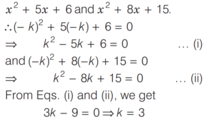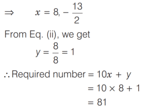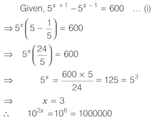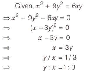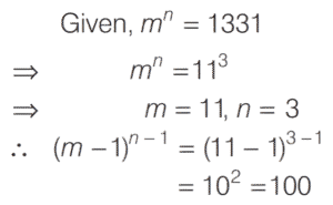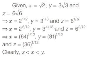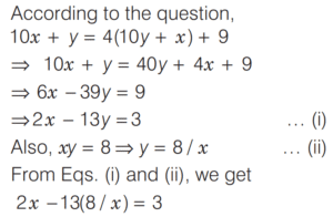 SOLVED PAPER 2020 (CDS) (I) (Elementary Mathematics)Total Questions: 10011. A two-digit number is 9 more than four times of the number obtained by interchanging its digits. If the product of digits in the two-digit number is 8, then what is the number?(a) 81(b) 42(c) 24(d) 18Correct Answer: (a) 81Solution:Let two digit number = 10x + y 12. If α and β are the roots of the quadratic equation x² + kx - 15 = 0 such that α - β = 8 then what is the positive value of k ?(a) 2(b) 3(c) 4(d) 5Correct Answer: (a) 2Solution:Given quadratic equation,13. What are the values of p and q respectively, if (x - 1) and (x + 2) divide the polynomial x³ + 4x² + px + q ?(a) 1, -6(b) 2, -6(c) 1, 6(d) 2, 6Correct Answer: (a) 1, -6Solution:Given polynomial is14. If (x + k) is the HCF of x² + 5x + 6 and x² + 8x + 15 then what is the value of k ?(a) 5(b) 3(c) 2(d) 1Correct Answer: (b) 3Solution:Since, (x + k) is the HCF of15. If 5ˣ⁺¹ - 5ˣ⁻¹ = 600 then what is the value of 10²ˣ ?(a) 1(b) 1000(c) 100000(d) 1000000Correct Answer: (d) 1000000Solution:16. A number divides 12288, 28200 and 44333 so as to leave the same remainder in each case. What is that number ?(a) 272(b) 232(c) 221(d) 120Correct Answer: (c) 221Solution:Let divisor is x and remainder is r.17. If x² + 9y² = 6xy, then what is y : x equal to ?(a) 1 : 3(b) 1 : 2(c) 2 : 1(d) 3 : 1Correct Answer: (a) 1 : 3Solution:18. If mand n are positive integers such that mⁿ = 1331 then what is the value of (m - 1)ⁿ⁻¹ ?(a) 1(b) 100(c) 121(d) 125Correct Answer: (b) 100Solution:19. Answer the following question(a) 1(b) -1(c) 0(d) 2aᵐ⁻ⁿCorrect Answer: (b) -1Solution:20. Solve the following equation(a) y < x < z(b) z < x < y(c) z < y < x(d) x < y < zCorrect Answer: (b) z < x < ySolution:Submit Quiz« Previous12345678910Next »