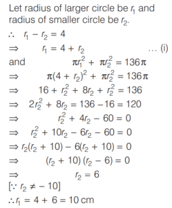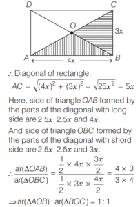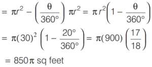 SOLVED PAPER 2020 (CDS) (I) (Elementary Mathematics)Total Questions: 10071. Two circles touch internally. The sum of their areas is 136π cm² and distance between their centres is 4 cm. What are the radii of the circles?(a) 11 cm, 7 cm(b) 10 cm, 6 cm(c) 9 cm, 5 cm(d) 8 cm, 4 cmCorrect Answer: (b) 10 cm, 6 cmSolution: 72. If area of a circle and a square are same, then what is the ratio of their perimeters?(a)(b)(c)(d)Correct Answer: (c)Solution:Let radius of circle be r and side of square be x.73. A circle of diameter 8 cm is placed in such a manner that it touches two perpendicular lines. Then another smaller circle is placed in the gap such that it touches the lines and the circle. What is the diameter of the smaller circle?(a) 4(3 - √2) cm(b) 4(3 - 2√2) cm(c) 8(3 - √2) cm(d) 8(3 - 2√2) cmCorrect Answer: (d) 8(3 - 2√2) cmSolution: 74. The thickness of a cylinder is 1 foot, the inner radius of the cylinder is 3 feet and height is 7 feet. To paint the inner surface it requires one litre of a particular colour. How much quantity of the same colour is required to paint all the surfaces of the cylinder?(a)(b)(c)(d)Correct Answer: (c)Solution:Given, thickness of a cylinder is 1 feet and inner radius of the cylinde r₂=3feet 75. A square and a rectangle have equal areas. If one side of the rectangle is of length numerically equal to the square of the length of the side of the square, then the other side of the rectangle is(a) square root of the side of the square(b) half the side of the square(c) of unit length(d) double the side of the squareCorrect Answer: (c) of unit lengthSolution:Let side of square be x, then one side of rectangle be x² and let other side of rectangle be y.Then, according to the question, x² = x² × y area of square = area of rectangle) ⇒ y = 176. The length and breadth of a rectangle are in the ratio 4 : 3. Then, what is the ratio of the area of the triangle formed by the parts of the diagonals with a long side to the area of the triangle formed by the parts of diagonals with a short side?(a) 3 : 4(b) 4 : 3(c) 16 : 9(d) 1 : 1Correct Answer: (d) 1 : 1Solution:Let length of rectangle be 4x and breadth of rectangle be 3x.77. Suppose a region is formed by removing a sector of 20° from a circular region of radius 30 feet. What is the area of this new region?(a) 150π square feet(b) 550π square feet(c) 650π square feet(d) 850π square feetCorrect Answer: (d) 850π square feetSolution:Area of new region,78. ABCD is a parallelogram where AC and BD are the diagonals. If ∠BAD = 60°, ∠ADB = 90°, then what is BD² equal to?(a)(b)(c)(d)Correct Answer: (b)Solution: 79. A line through the vertex A of a parallelogram ABCD meets DC in P and BC produced in Q. If P is the mid-point of DC, then which of the following is/are correct?1. Area of ΔPDA is equal to that of ΔPCQ. 2. Area of ΔQAB is equal to twice that of ΔPCQ.Select the correct answer using the code given below:(a) Only 1(b) Only 2(c) Both 1 and 2(d) Neither 1 nor 2Correct Answer: (a) Only 1Solution:Since, BC ll AD 80. How many cubic metre of earth is to be dug out to dig a well of radius 1.4 m and depth 5 m?(a) 30.2m³(b) 30.4m³(c) 30.6m³(d) 30.8m³Correct Answer: (d) 30.8m³Solution:Volume of well with radius 1.4 m and depth 5 m. Submit Quiz« Previous12345678910Next »