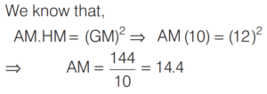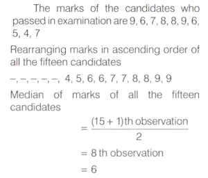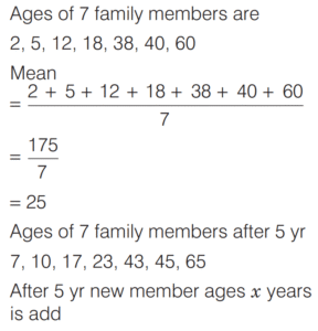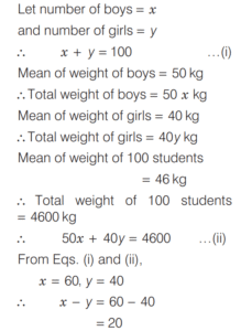 SOLVED PAPER 2020 (CDS) (II) (Elementary Mathematics)Total Questions: 10091. Fifteen candidates appeared in an examination. The marks of the candidates who passed in the examination are 9, 6, 7, 8, 8, 9, 6, 5, 4 and 7. What is the median of marks of all the fifteen candidates?(a) 6(b) 6.5(c) 7(d) 7.5Correct Answer: (a) 6Solution:92. If the yield (in gm) of barley from 7 plots of size one square yard each, were found to be 180, 191, 175, 111, 154, 141 and 176, then what is the median of yield ?(a) 111 gm(b) 154 gm(c) 175 gm(d) 176 gmCorrect Answer: (c) 175 gmSolution:93. Which one of the following measures of central tendency will be used to determine the average size of the shoe sold in the shop?(a) Arithmetic mean(b) Geometric mean(c) Median(d) ModeCorrect Answer: (a) Arithmetic meanSolution:Average size of the shoe sold in shop by Arithmetic mean.94. When the class intervals have equal width, the height of a rectangle in a histogram represents(a) Width of the class(b) Lower class limit(c) Upper class limit(d) Frequency of the classCorrect Answer: (d) Frequency of the classSolution:The height of a rectangle in a histogram represents frequency of the class.95. The ages of 7 family members are 2, 5, 12, 18, 38, 40 and 60 year respectively. After 5 year a new member aged x year is added. If the mean age of the family now goes up by 1.5 year, then what is the value of x ?(a) 1(b) 2(c) 3(d) 4Correct Answer: (b) 2Solution:We have, 96. The mean weight of 100 students in a class is 46 kg. The mean weight of boys is 50 kg and that of girls is 40 kg. The number of boys exceeds the number of girls by(a) 10(b) 15(c) 20(d) 25Correct Answer: (c) 20Solution:We have, 100 student in a class.97. What is the algebraic sum of the deviations from the mean of a set of values 25, 65, 73, 75, 83, 76, 17, 15, 7, 14 ?(a) -1(b) 0(c) 1(d) 2Correct Answer: (b) 0Solution:We know that, algebraic sum of the deviation from the mean of any data is zero.98. The mean of five observations x, x + 2, x + 4, x + 6, x + 8 is m. What is the mean of the first three observations ?(a) m(b) m - 1(c) m - 2(d) m - 3Correct Answer: (c) m - 2Solution:Given data x, x + 2 , x + 4, x + 6, x + 899. What is the median of 2, 4, 6, ..., 100?(a) 48(b) 49(c) 50(d) 51Correct Answer: (d) 51Solution:Given, data100. The harmonic mean and the geometric mean of two numbers are 10 and 12 respectively. What is their arithmetic mean?(a)(b)(c)(d)Correct Answer: (d)Solution:Given, HM = 10, GM = 12Submit Quiz« Previous12345678910