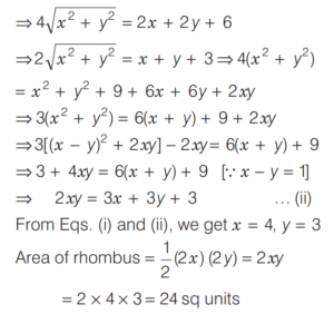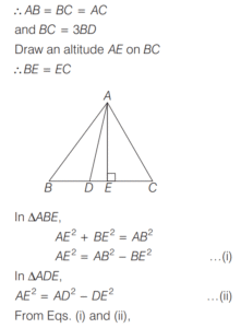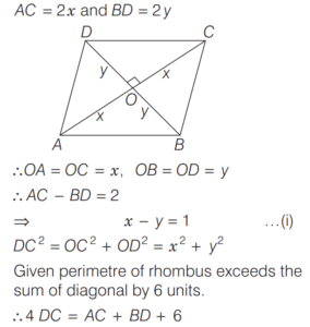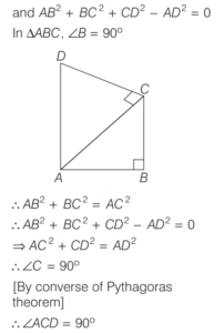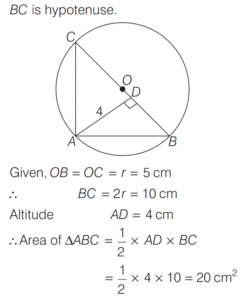 SOLVED PAPER 2020 (CDS) (II) (Elementary Mathematics)Total Questions: 10061. In a quadrilateral ABCD, ∠B = 90° and AB² + BC² + CD² - AD² = 0, then what is ∠ACD equal to ?(a) 30°(b) 60°(c) 90°(d) 120°Correct Answer: (c) 90°Solution:Given, in quadrilateral ABCD62. In a ∆ABC, AC = 12cm, AB = 16cm and AD is the bisector of ∠A. If BD = 4cm, then what is DC equal to ?(a) 2 cm(b) 3 cm(c) 4 cm(d) 5 cmCorrect Answer: (b) 3 cmSolution:Given, in ∆ABC63. ABCD is a cyclic quadrilateral. The bisectors of the angles A, B, C and D cut the circle at P, Q, R and S respectively. What is a ∠PQR + ∠RSP equal to?(a) 90°(b) 135°(c) 180°(d) 270°Correct Answer: (c) 180°Solution:64. ABC is an equilateral triangle. The side BC is trisected at D such that BC = 3 BD. What is the ratio of AD² to AB² ?(a) 7 : 9(b) 1 : 3(c) 5 : 7(d) 1 : 2Correct Answer: (a) 7 : 9Solution:Here, ABC is an equilateral triangle. 65. Consider the following statements:1. The diagonals of a trapezium divide each proportionally. other 2. Any line drawn parallel to the parallel sides of a trapezium divides the non-parallel sides proportionally.Which of the above statements is/are correct?(a) only 1(b) only 2(c) Both 1 and 2(d) Neither 1 nor 2Correct Answer: (c) Both 1 and 2Solution:1. Diagonals of a trapezium divide each other proportionally are true 66. If H, C and V are respectively the height, curved surface area and volume of a cone, then what is 3πVH³ + 9V² equal to ?(a) C² H²(b) 2C² H²(c) 5C² H²(d) 7C² H²Correct Answer: (a) C² H²Solution:Here, H C, and V are respectively the height, curved surface area and volume of a cone.67. How many solid lead balls each of diameter 2 mm can be made from a solid lead ball of radius 8 cm ?(a) 512(b) 1024(c) 256000(d) 512000Correct Answer: (d) 512000Solution:Here, R = 8 cm, r = 01. cm68. The two sides of a triangle are 40 cm and 41 cm. If the perimeter of the triangle is 90 cm, what is its area ?(a) 90 cm²(b) 135 cm²(c) 150 cm²(d) 180 cm²Correct Answer: (d) 180 cm²Solution:ere, sides of triangle are 40 cm, 41 cm and perimeter of triangle is 90 cm.69. The diagonals of a rhombus differ by 2 units and its perimeter exceeds the sum of the diagonals by 6 units. What is the area of the rhombus ?(a) 48 sq units(b) 36 sq units(c) 24 sq units(d) 12 sq unitsCorrect Answer: (c) 24 sq unitsSolution:Let the diagonal of rhombus. 70. What is the area of a right-angled triangle, if the radius of the circumcircle is 5 cm and altitude drawn to the hypotenuse is 4 cm ?(a) 20 cm²(b) 18 cm²(c) 16 cm²(d) 10 cm²Correct Answer: (a) 20 cm²Solution:ABC is a right angle triangle.Submit Quiz« Previous12345678910Next »