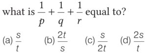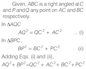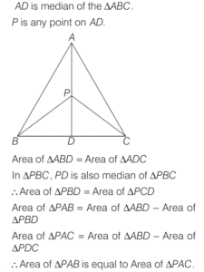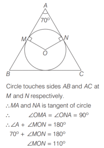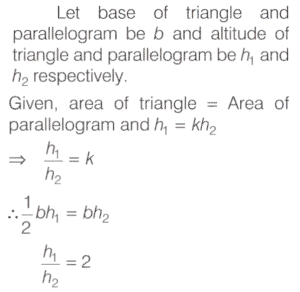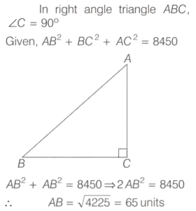 SOLVED PAPER 2020 (CDS) (II) (Elementary Mathematics)Total Questions: 10081. A circle is inscribed in a triangle ABC. It touches the sides AB and AC at M and N respectively. If O is the centre of the circle and ∠A = 70°, then what is ∠MON equal to?(a) 90°(b) 100°(c) 110°(d) 100°Correct Answer: (c) 110°Solution:Given, A circle inscribed in a triangle ABC.82. The sum of the squares of sides of a right-angled triangle is 8450 square units. What is the length of its hypotenuse?(a) 50 units(b) 55 units(c) 60 units(d) 65 unitsCorrect Answer: (d) 65 unitsSolution:83. A triangle and a parallelogram have equal areas and equal bases. If the altitude of the triangle is k times the altitude of the parallelogram, then what is the value of k ?(a) 4(b) 2(c) 1(d) ½Correct Answer: (b) 2Solution:84. Areas of two squares are in the ratio m² : n⁴ What is the ratio of their perimeters?(a) m : n(b) n : m(c) m : n²(d) m² : nCorrect Answer: (c) m : n²Solution:85. AD is the median of the triangle ABC. If P is any point on AD, then which one of the following is correct?(a) Area of triangle PAB is greater than the area of triangle PAC.(b) Area of triangle PAB is equal to area of triangle PAC.(c) Area of triangle PAB is one-fourth of the area of triangle PAC.(d) Area of triangle PAB is half of the area of triangle PAC.Correct Answer: (b) Area of triangle PAB is equal to area of triangle PAC.Solution:We have, AD is median of the ∆ABC. P is any point on AD.86. What is the area of a segment of a circle of radius r subtending an angle θ at the centre ?(a)(b)(c)(d)Correct Answer: (b)Solution: 87. ABC is a triangle right-angled at C. Let P be any point on AC and Q be any point on BC. Which of the following statements is/are correct?1. AQ² + BP² = AB² + PQ² 2. AB = 2PQSelect the correct answer using the code given below :(a) only 1(b) only 2(c) Both 1 and 2(d) Neither 1 nor 2Correct Answer: (a) only 1Solution: 88. Four circular coins of equal radius are placed with their centres coinciding with four vertices of a square. Each coin touches two other coins. If the uncovered area of the square is 42 cm² then what is the radius of each coin? (Assume π = ²²⁄₇)(a) 5 cm(b) 7 cm(c) 10 cm(d) 14 cmCorrect Answer: (b) 7 cmSolution:Let radius of coins = r89. The radii of the flat circular faces of a bucket are x and 2x. If the height of the bucket is 3x, what is the capacity of the bucket ? (Assume π = ²²⁄₇)(a) 11x³(b) 22x³(c) 44x³(d) 55x³Correct Answer: (b) 22x³Solution:Given,90. If p, q, r, s and t represent length, breadth, height, surface area and volume of a cuboid respectively, then(a)(b)(c)(d)Correct Answer: (c)Solution:Submit Quiz« Previous12345678910Next »