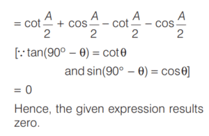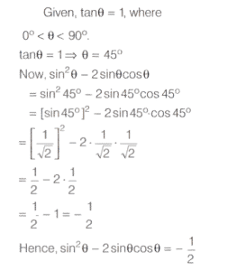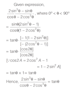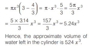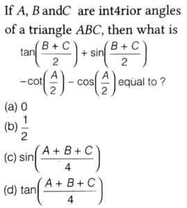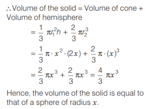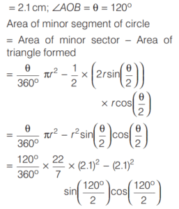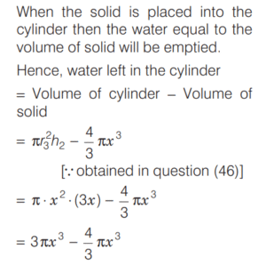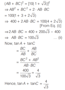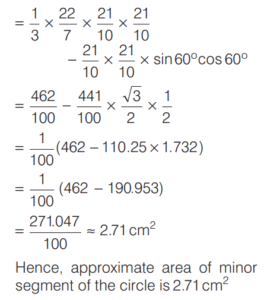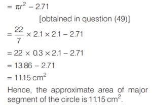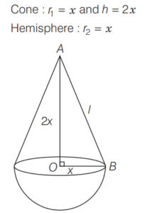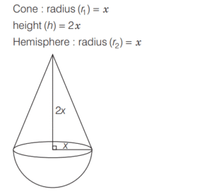 SOLVED PAPER 2021 (CDS) (II) (Elementary Mathematics)Total Questions: 10041. If x = m sec A + n tan A and y = m tan A +n sec A, then what is x² - y² equal to ?(a) m² - n²(b) m² + n²(c) m² + n ² - mn(d) m² - n² + mnCorrect Answer: (a) m² - n²Solution:Given, 42. If for some θ lying between 0° and 90°, tan θ = 1, then what is the value of sin²θ - 2sin θ cos θ ?(a) -1(b) 0(c) ½(d) - (½)Correct Answer: (d) - (½)Solution:43. Solve it ?(a) sinθ(b) cosθ(c) tanθ(d) cotθCorrect Answer: (c) tanθSolution:44. Solve it ?(a)(b)(c)(d)Correct Answer: (a)Solution:Given expression, 45. In a triangle ABC, right angle at B, AB + BC = 10 (1 + √3) cm length of the hypotenuse is 20 cm. What is the value of tan A + tan C ?(a)(b)(c)(d)Correct Answer: (a)Solution:In a right angled triangle ABC, it is given that, 46. (Questions 46-48) Consider the following for the next three questions that follow. A solid consisting of a right circular cone of radius x and height 2x standing on a hemisphere of radius x (Take π = ²²⁄₇)The volume of the solid is equal to that of a(a) Sphere of radius x(b) sphere of diameter x(c) cylinder of radius x(d) cylinder of radius √2xCorrect Answer: (a) Sphere of radius xSolution:Given dimensions : 47. What is the approximate total surface area of the solid(a) 11.2x²(b) 12.5x²(c) 13.3x²(d) 15.1x²Correct Answer: (c) 13.3x²Solution:We have, 48. The solid is placed upright in a right circular cylinder full of water such that it touches the bottom. If the internal radius of cylinder is x and height is 3x, what is the approximate volume of water left in the cylinder?(a) 5.04x²(b) 5.09x²(c) 5.14x²(d) 5.24x²Correct Answer: (d) 5.24x²Solution:We are given the dimensions as 49. (Questions 49 and 50) Consider the following for next two question that follow.The chord of a circle of radius 2.1 cm is inclined the angle of 120° on the centre of circle. [Take π = (²²⁄₇) and √3 = 1.732]What is the approximate area of minor segment of the circle ?(a) 2.71 cm²(b) 2.42 cm²(c) 1.91 cm²(d) 1.71 cm²Correct Answer: (a) 2.71 cm²Solution:Given, Radius (r) of the circle 50. What is the approximate area of major segment of the circle?(a) 10.05 cm²(b) 10.15 cm²(c) 11.05 cm²(d) 11.15 cm²Correct Answer: (d) 11.15 cm²Solution:The approximate area of major segment of circle = Area of circle − area of minor segment of circleSubmit Quiz« Previous12345678910Next »