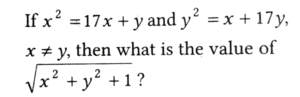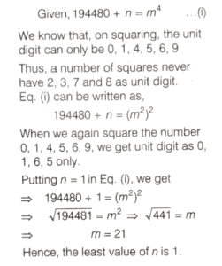 SOLVED PAPER 2022 (CDS) (I) (Elementary Mathematics)Total Questions: 10011. What is the value of the following?(a)-1(b) 0(c) 1(d) 5Correct Answer: (c) 1Solution:12. The perpendicular dropped from a vertex of a right-angled triangle upon the hypotenuse divides it into two segments of lengths 9 units and 16 units respectively. What is the length of the perpendicular?(a) 6 Units(b) 8 Units(c) 10 Units(d) 12 UnitsCorrect Answer: (d) 12 UnitsSolution:13. If 43ˣ × 47ʸ = (2021)² , x ≠ 0, y ≠ 0, then what is the value of the following?(a) 5(b) 15(c) 25(d) 45Correct Answer: (a) 5Solution:14. Solved(a) 24(b) 51(c) 68(d) 102Correct Answer: (a) 24Solution:15. Solved(a) 17(b) 19(c) 23(d) 27Correct Answer: (a) 17Solution:16. What is the least value of n if 194480 + n = m⁴ where m and n are natural numbers?(a) 1(b) 2(c) 3(d) 4Correct Answer: (a) 1Solution:17. Solved(a) 1(b) 2(c) 4(d) 8Correct Answer: (c) 4Solution:18. What is the area of the region enclosed by three identical circles (each of radius 4 cm) touching each other?(a)(b)(c)(d)Correct Answer: (c)Solution:19. A car travels from A to Bat a speed of 40km / h travels back from B to A at a speed of 30 km/h and again goes from A to B at a speed of 60 km/h. What is the average speed of the car?(a) ¹³⁰⁄₃ km / h(b) 42 km/h(c) 40 km/h(d) ¹²⁵⁄₃ km / hCorrect Answer: (c) 40 km/hSolution:20. What is the smallest natural number from the following which must be subtracted from 9410 to make the remaining number a perfect square?(a) 4(b) 3(c) 2(d) 1Correct Answer: (d) 1Solution:Submit Quiz« Previous12345678910Next »