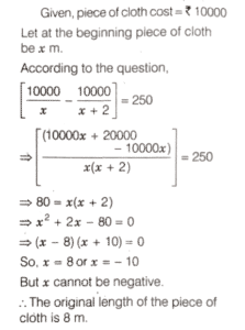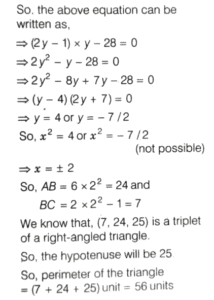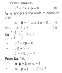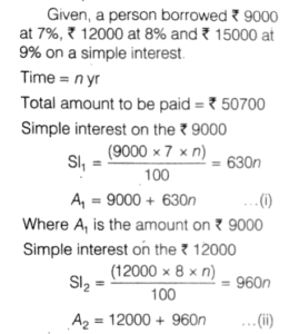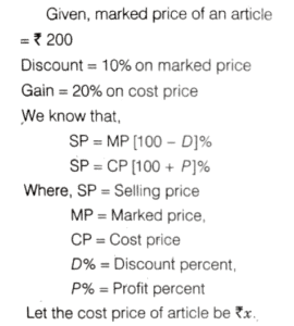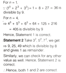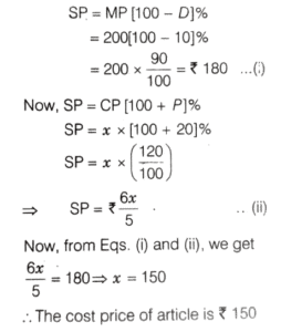 SOLVED PAPER 2022 (CDS) (I) (Elementary Mathematics)Total Questions: 10031. If α and β are the roots of thequadratic equation x² + αx + β = 0 where β ≠ 0, then what is the value of α - β ?(a) 4(b) 3(c) -1(d)-3Correct Answer: (b) 3Solution:32. A shopkeeper marks the price of an article at 200. After allowing a discount of 10%, he still gains 20% on the cost price. What is the cost price of the article?(a) ₹170(b) ₹160(c) ₹150(d) ₹120Correct Answer: (c) ₹150Solution:33. A person borrowed ₹ 9000 at 7%,₹ 12000 at 8% and ₹ 15000 at 9% on simple interest per annum. He had to pay ₹ 50700 at the end of n year. What is the value of n?(a) 3(b) 4(c) 5(d) 6Correct Answer: (c) 5Solution:34. Consider the following statements :1. The sum of the cubes of three consecutive natural numbers is divisible by 9. 2. Every even power of every odd number (> 1) when divided by 8 gives 1 as remainder.Which of the above statements is/are correct?(a) Only 1(b) Only 2(c) Both 1 and 2(d) Neither 1 nor 2Correct Answer: (c) Both 1 and 2Solution: 35. What is the number of divisors of 1000 (excluding 1 and 1000)?(a) 12(b) 13(c) 14(d) 16Correct Answer: (c) 14Solution:36. If the sum of the roots of theequation x² - k² x + 30kx - 161x - 64 = 0 is zero, then what is the difference of the roots?(a) 15(b) 16(c) 17(d) 18Correct Answer: (b) 16Solution:37. A piece of cloth costs ₹ 10000. If a 2 m longer piece of the same cloth is purchased for the same amount, it would cost ₹ 250 less per metre. What is the original length of the piece of cloth?(a) 8 m(b) 10 m(c) 12 m(d) 16 mCorrect Answer: (a) 8 mSolution:38. What is the condition that the roots of the equation ax² + bx + c = 0 are in the ratio c : 1 ?(a) b² = a (c + 1)²(b) a² = b (c + 1)²(c) b ² = a (c - 1)²(d) ab ² = (c + 1)²Correct Answer: (a) b² = a (c + 1)²Solution: 39. Two sides of a triangle forming a right angle are 6x² and (2x² - 1) If the area of the triangle is 84 square units, then what is the perimeter of the triangle?(a) 51 units(b) 53 units(c) 56 units(d) 59 unitsCorrect Answer: (c) 56 unitsSolution:40. A train X takes 2 h less than a train Y to cover a distance of 192 km between two cities. Their average speeds differ by 16 km/h. How long does the faster train take to cover the journey?(a) 3 h(b) 4 h(c) 5 h(d) 6 hCorrect Answer: (b) 4 hSolution: Submit Quiz« Previous12345678910Next »