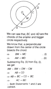 2. If two concentric circles are intersected by a line at A, B, C and D respectively, then AC = BD