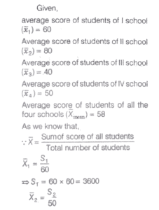 SOLVED PAPER 2022 (CDS) (II) (Elementary Mathematics)Total Questions: 10031. If x is the harmonic mean between y and z, then which one of the following is correct?(a) xy + xz - yz = 0(b) xy + xz - 2yz = 0(c) xy + xz + yz = 0(d) xy + xz - 4yz = 0Correct Answer: (b) xy + xz - 2yz = 0Solution:32. What is the median of all possible factors of 120?(a) 10(b) 11(c) 12(d) 13.5Correct Answer: (a) 10Solution:33. The sum of deviations of a set of n values measured from 50 is -10 and the sum of deviations of the values measured from 46 is 70. What is the mean of the values?(a) 48.5(b) 49.0(c) 49.5(d) 50.0Correct Answer: (c) 49.5Solution:34. Consider the following table in respect of students of 4 schools who appeared in a test.School Number of Student Average Mark in The Test I6060II5080II5040IVX50If the average marks of the students of all four schools are 58, then how many students appeared from School-IV?(a) 38(b) 40(c) 42(c) 42Correct Answer: (b) 40Solution:35. The data of different natural numbers 4, 7, 10, 14, 2x +3, 2x + 5, 22, 23, 30, 50 are in ascending order. How many possible values are there for the median of the data for various values of x?(a) Only one value(b) Only two values(c) Only three values(d) Five valuesCorrect Answer: (a) Only one valueSolution:36. If M is the mean of the first 100 even natural numbers, then what is the mean of the first 100 odd natural numbers?(a) M - 1(b) M(c) M + 1(d) M + 2Correct Answer: (a) M - 1Solution:37. Mean marks of 50 students were found to be 78.4. But later it was detected that 95 was misread as 59 and 25 was misread as 52. What is the difference between correct mean and incorrect mean?(a) 0.04(b) 0.08(c) 0.12(d) 0.18Correct Answer: (d) 0.18Solution:38. In a triangle ABC, ∠A = 2θ, ∠B = ∠C = 4θ and θ satisfies 4sin²θ + 2sinθ - 1 = 0. What is the ratio of BC to AB?(a)(b)(c)(d)Correct Answer: (d)Solution:39. A circle is inscribed in a triangle ABC. It touches the sides BC, CA, AB at D, E, F respectively. What is angle EDF equal to ?(a)(b)(c)(d)Correct Answer: (d)Solution:40. The length of a room is ²¹⁄₁₆ times its breadth and breadth is ⁴⁄₃ height. If H is the height of the room and L is the longest rod that can be placed in the room, then which one of the following is correct?(a) 12L = 29H(b) 9L = 25H(c) 7L = 23H(d) 5L = 13HCorrect Answer: (a) 12L = 29HSolution:Submit Quiz« Previous12345678910Next »