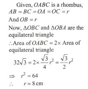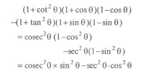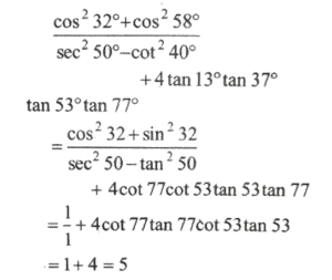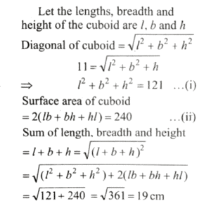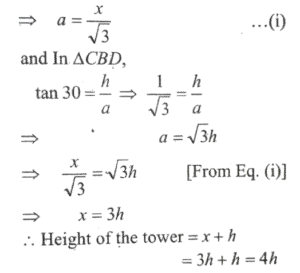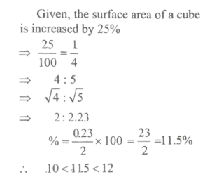 SOLVED PAPER 2023 (CDS) (I) (Elementary Mathematics)Total Questions: 10051. What is the value of(cos² 32° + cos² 58°) ÷ (sec² 50° - sec² 40°) 4 tan13° tan37° tan53° tan77° ?(a) 2(b) 3(c) 4(d) 5Correct Answer: (d) 5Solution:52. What is the value of(l + cot² θ)(l + cos θ)(l - cos θ) - (l + tan²θ) (l + sin θ)(l - sin θ)(a) -1(b) 0(c) 1(d) 2Correct Answer: (b) 0Solution:53. If 2cos² θ + sin θ - 2 = 0, 0 < θ ≤ π/2 then what is the value of θ ?(a) π/2(b) π/4(c) π/3(d) π/2Correct Answer: (a) π/2Solution:54. A person on the top of a vertical tower observes a car moving at a uniform speed coming directly towards it. If it takes 6 min for the angle of depression to change from 30° to 45°, and further t min to reach the tower, which one of the following is correct(a) 7.7 < t < 8(b) 8 < t < 8.3(c) 8.3 < t < 8.6(d) 8.6 < t < 8.9Correct Answer: (b) 8 < t < 8.3Solution:55. A woman is standing on the deck of a ship, which is h (in metres) above water level. she observes the angle of elevation of the top of a tower as 60° and the angle of depression of the base of the tower as 30°. What is the height of the tower?(a) 2h(b) 3h(c) 4h(d) 5hCorrect Answer: (c) 4hSolution:56. Let ABC be a right-angled triangle with sides 5 cm, 12 cm and 13 cm. If p is the length of the perpendicular drawn from vertex A on the hypotenuse BC, then what is the value of 13p?(a) 24(b) 48(c) 60(d) 90Correct Answer: (c) 60Solution:57. OABC is a rhombus whose three vertices lie on a circle with centre at O. If the area of the rhombus is 32√3cm² then what is the radius of the circle?(a) 4 cm(b) 6 cm(c) 8 cm(d) 16 cmCorrect Answer: (c) 8 cmSolution:58. The surface area of a cube is increased by 25%. If p is the percentage increase in its length, then which one of the following is correct?(a) 16 < p < 18(b) 14 < p < 16(c) 12 < p < 14(d) 10 < p < 12Correct Answer: (d) 10 < p < 12Solution:59. A solid cube is cut into two cuboids of equal volume. What is the ratio of total surface area of the given cube to that of one of the cuboids?(a) 2 : 1(b) 3 : 2(c) 4 : 3(d) 5 : 3Correct Answer: (b) 3 : 2Solution:60. The length of a diagonal of a cuboid is 11 cm. The surface area is 240 square cm. What is the sum of its length, breadth and height?(a) 16 cm(b) 17 cm(c) 18 cm(d) 19 cmCorrect Answer: (d) 19 cmSolution:Submit Quiz« Previous12345678910Next »