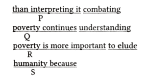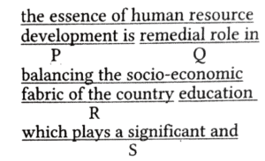 SOLVED PAPER 2024 (CDS) (I) (English)Total Questions: 12021. (Questions 21-30) Each of the following items in the section consists of a sentences, the parts of which have been jumbled. These parts have been labelled as P, Q, R and S. Each sentence is followed by four sequences, namely (a), (b), (c) and (d), indicating the rearrangement of the parts. You are required to select the most appropriate option and mark your response on the Answer Sheet accordingly.(a) PQRS(b) QRPS(c) RPQS(d) SPRQCorrect Answer: (c) RPQSSolution:The correct order is RPQS.22. Read the statement.(a) QRSP(b) QSRP(c) SPRQ(d) SQRPCorrect Answer: (b) QSRPSolution:The correct order is QSRP.23. Read the statement.(a) PQRS(b) SRPQ(c) QPRS(d) QRPSCorrect Answer: (d) QRPSSolution:The correct order is RQPS.24. Read the statement.(a) RPSQ(b) QSPR(c) RPQS(d) QRPSCorrect Answer: (c) RPQSSolution:The correct order is RPQS.25. Read the statement.(a) PQRS(b) PRSQ(c) SRPQ(d) SRQPCorrect Answer: (d) SRQPSolution:The correct order is SRQP.26. Read the statement.(a) PSQR(b) SPRQ(c) SRQP(d) PQRSCorrect Answer: (c) SRQPSolution:The correct order is SRQP.27. Read the statement.(a) QRPS(b) QSPR(c) RPSQ(d) SPQRCorrect Answer: (b) QSPRSolution:The correct order is QSPR.28. Read the statement.(a) PSQR(b) RQSP(c) RPSQ(d) PRSQCorrect Answer: (b) RQSPSolution:The correct order is RQSP.29. Read the statement.(a) RPSQ(b) PRSQ(c) RQPS(d) SPQRCorrect Answer: (c) RQPSSolution:The correct order is RQPS.30. Read the statement.(a) RQSP(b) PSQR(c) RPSQ(d) PQRSCorrect Answer: (a) RQSPSolution:The correct order is RQSP.Submit Quiz« Previous123456789101112Next »