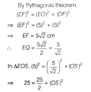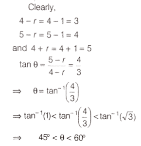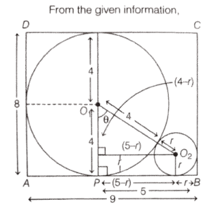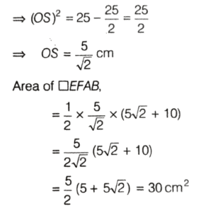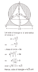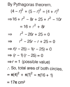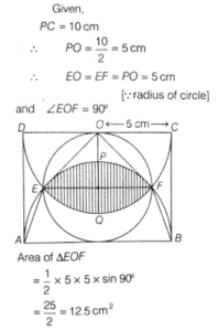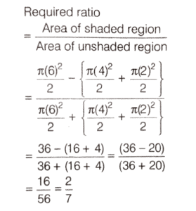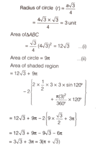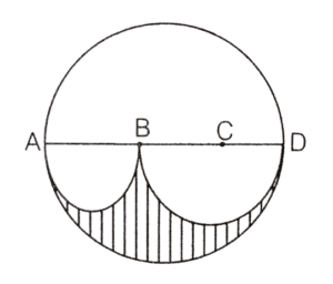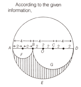 SOLVED PAPER 2024 (CDS) (I) (Mathematics)Total Questions: 10091. (Questions 91-93) Consider the following for the next three (03) items that follow :Consider two identical semicircles and one circle inscribed in a rectangle of length 10 cm as shown in the figure given below..(Take, π = 3.14 and √2 = 1.4)What is the area of triangle EOF?(a) 12.5 √3 cm²(b) 625 √3 cm²(c) 12.5 cm²(d) 6.25 cm²Correct Answer: (c) 12.5 cm²Solution:92. What is the area of trapezium AEFB?(a) 30 cm²(b) 25 cm²(c) 20 cm²(d) 18.75 cm²Correct Answer: (a) 30 cm²Solution: 93. What is the area of the shaded region?(a) 14.75 cm²(b) 14.25 cm²(c) 7.225 cm²(d) 7.625 cm²Correct Answer: (b) 14.25 cm²Solution:94. (Questions 94 and 95) Consider the following for the next to (02) items that follow :Consider a circle of area 9pi square unit and an equitateral triangle ABC as shown in the figure given below.What is the length of the side of the triangle ABC?(a) 2√3 unit(b) 4√3 unit(c) 6√3 unit(d) 8√3 unitCorrect Answer: (b) 4√3 unitSolution:95. What is the area of the shaded region?(a) 3(π + √3) cm²(b) 3(π + 2√3) cm²(c) 1.5(3π + 8√3) cm²(d) 6(π + 2√3) cm²Correct Answer: (a) 3(π + √3) cm²Solution:96. (Questions 96-98) Consider the following for the next three (03) items that follows:Two circles with centres at O₁ and O₂ touching each other are placed inside a rectangle of sides 9 cm and 8 cm as shown in the figure given below. What is the sum of the areas of the two circles ?(a) 17π cm²(b) 16.75π cm²(c) 16.5π cm²(d) 16.25π cm²Correct Answer: (a) 17π cm²Solution: 97. Which one of the following is correct in respect of angle 0?(a) 0 < θ < 30°(b) 30° < θ < 45°(c) 45° < θ < 60°(d) 60° < θ < 90°Correct Answer: (c) 45° < θ < 60°Solution:98. What is the area of the shaded region ?(a) (240 - 10π - πθ)/24 unit²(b) (240 - 6π - πθ)/24 unit²(c) (120 - 12π - πθ)/24 unit²(d) (240 - 12π - πθ)/24 unit²Correct Answer: (d) (240 - 12π - πθ)/24 unit²Solution:99. (Questions 99 and 100) Consider the following for the next two (02) items that follow :Let ABCD be the diameter of a circle of radius 6 cm. The lengths AB, BC and CD are equal. Semi- circles are drawn with AB and BD as diameters as shown in the figure given below. What is the ratio of the area of the shaded region to that of the non-shaded region?(a) 2 : 7(b) 2 : 5(c) 3 : 5(d) 5 : 8Correct Answer: (a) 2 : 7Solution: 100. What is the perimeter of the shaded region?(a) 24π cm(b) 18π cm(c) 15π cm(d) 12π cmCorrect Answer: (d) 12π cmSolution:Perimeter of shaded region, = Perimeter of AED + Perimeter of AFB + Perimeter of BGD = π(6) + π(2) + π(4) = 6π + 2π + 4π = 12πSubmit Quiz« Previous12345678910