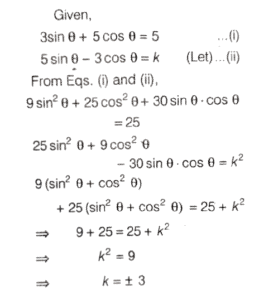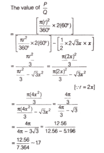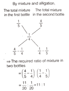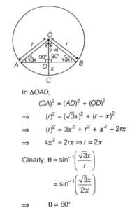 SOLVED PAPER 2024 (CDS) (I) (Mathematics)Total Questions: 10031. A bottle contains spirit and water in the ratio 1 : 4 and another identical bottle contains spirit and water in the ratio 4: 1. In what ratio should the mixtures in the two bottles be mixed to get a new mixture in which the ratio of spirit to water is 1 : 3?(a) 5 : 1(b) 6 : 1(c) 10 : 1(d) 11 : 1Correct Answer: (d) 11 : 1Solution:32. If 3sinθ + 5cosθ = 5 then what is the value of 5sinθ - 3cosθ?(a) -3(b) -2(c) 5(d) 8Correct Answer: (a) -3Solution:33. Consider the following in respect of the polynomialx⁴ᵏ + x⁴ᵏ⁺² + x⁴ᵏ⁺⁴ + x⁴ᵏ⁺⁶1. The remainder is zero when the polynomial is divided by x² + 1 2. The remainder is zero when the polynomial is divided by x² + 1Which of the statements given above is/are correct?(a) 1 only(b) 2 only(c) Both 1 and 2(d) Neither 1 nor 2Correct Answer: (c) Both 1 and 2Solution:34. What is the minimum value of for(a) 3(b) 5(c) 7(d) 9Correct Answer: (c) 7Solution:35. Find the value of this -(a) 1(b) 4(c) 7(d) 9Correct Answer: (a) 1Solution:36. Find the value of this -(a) 720(b) 480(c) 360(d) 60Correct Answer: (a) 720Solution:On comparing L.H.S. and R.H.S, we get a = 2, b = 3, c = 4, d = 5, and e = 6 Then, a × b × c × d × e = 2 × 3 × 4 × 5 × 6 = 72037. A cube whose edge is 14 cm long has on each of its faces a circle of 7 cm radius painted yellow. What is the total area of unpainted surface? (Take π = 22/7)(a) 126cm²(b) 189cm²(c) 252cm²(d) 315cm²Correct Answer: (c) 252cm²Solution:38. From a circular metal plate of radius 7 cm and thickness 0.16 mm, a sector is cut off containing an angle 150°. The remaining piece is moulded into a spherical bead of radius r. What is the value of r in cm?(a) 0.35(b) 0.7(c) 1.05(d) 1.4Correct Answer: (b) 0.7Solution:39. The chord AB of a circle with centre at O is 2√3 times the height of the minor segment. If P is the area of the sector OAB and Q is the area of the minor segment of the circle, then what is the approximate value of P/Q ?(Take, √3 = 1.7 and π = 3.14 )(a) 1.4(b) 1.7(c) 2.2(d) 2.6Correct Answer: (b) 1.7Solution:According to the given information. Let OA = OB = r cm ⇒ OD = (r - x) cm 40. What is the area of the region between two concentric circles, if the length of a chord of the outer circle touching the inner circle at a particular point of its circumference is 14 cm? (Take, π = 22/7)(a) 154cm²(b) 144cm²(c) 132cm²(d) Cannot be determined due to insufficient dataCorrect Answer: (a) 154cm²Solution:Submit Quiz« Previous12345678910Next »