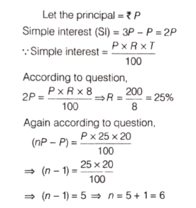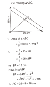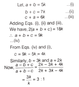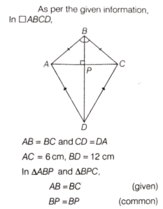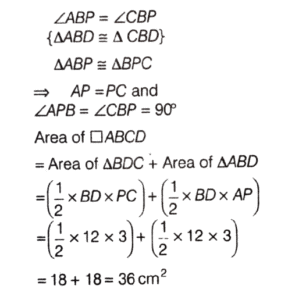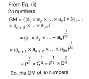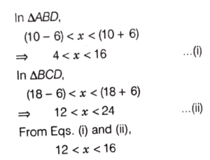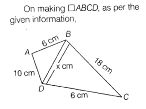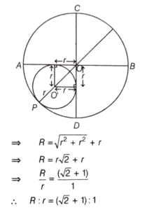SOLVED PAPER 2024 (CDS) (I) (Mathematics)Total Questions: 10041. In a right angled triangle ABC, AB = 15cm BC = 20cm and AC = 25cm Further, BP is the perpendicular on AC. What is the difference in the area of triangles PAB and PCB?(a) 40cm²(b) 42cm²(c) 45cm²(d) 48cm²Correct Answer: (b) 42cm²Solution: Hence required difference = 1/2 × 16 × 12 - 1/2 × 9 × 12 = 42 cm²42. Let the positive numbers a₁ a₂ , a₃, ....... a₃ₙ be in GP. If P is the GM of a₁ a₂ , a₃, ....... aₙ, and Q is the GM of aₙ₊₁, aₙ₊₂, aₙ₊₃, ...... a₃ₙ, then what is the GM of 3n numbers?(a)(b)(c)(d)Correct Answer: (d)Solution:43. The cost price of y articles is equal to selling price of z articles. If y : z = 5 : 4, what is the profit percentage ?(a) 20%(b) 25%(c) 30%(d) 40%Correct Answer: (b) 25%Solution:44. A sum of money invested at simple interest triples itself in 8 yr and becomes n times in 20 yr. What is the value of n?(a) 5(b) 6(c) 7.5(d) 9Correct Answer: (b) 6Solution:45. If the work done by x men in (x + 1) days is equal to the work done by (x + 5) men in (x - 2) days, then what is the value of x?(a) 5(b) 6(c) 7(d) 8Correct Answer: (a) 5Solution:46. If (a + b) : (b + c) : (c + a) = 5 : 7 : 6 , then what is the value of (a - b + c) : (a + b - c)?(a) 1 : 1(b) 2 : 3(c) 3 : 1(d) 4 : 3Correct Answer: (c) 3 : 1Solution:47. Let x be the compound interest at the end of 3 yr on a sum of ₹1000 at the rate of 10% compounded annually and y be the simple interest at the end of 3 yr on a sum of ₹1000 at the annual rate of 11%. What is the difference between x and y?(a) ₹16(b) ₹15(c) ₹5(d) ₹1Correct Answer: (d) ₹1Solution:48. In a quadrilateral ABCD, AB = 6 cm, BC = 18cm CD = 6cm and DA = 10cm If the diagonal BD = x, then which one of the following is correct?(a) 8 < x < 12(b) 12 < x < 16(c) 16 < x < 18(d) 18 < x < 20Correct Answer: (b) 12 < x < 16Solution:49. In a quarter circle of radius R, a circle of radius r is inscribed. What is the ratio of R tor?(a) (√2+1) : 1(b) (√3+1) : 1(c) 3 : 2(d) 5 : 4Correct Answer: (a) (√2+1) : 1Solution:On making the circle whose center O and O', as per the given information, ∵ OP = OO' + O'P (By figure) 50. In a quadrilateral ABCD, AB = BC and CD = DA ; AC and BD are diagonals such that AC = 6cm and BD = 12cm What is the area of the quadrilateral?(a) 24cm²(b) 30cm²(c) 36cm²(d) 40cm²Correct Answer: (c) 36cm²Solution:Submit Quiz« Previous12345678910Next »