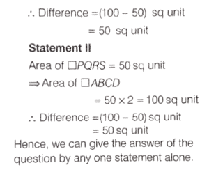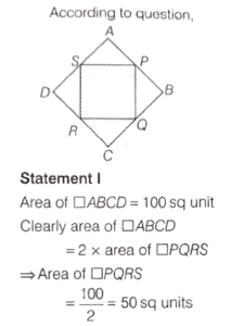Statement II Area of the quadrilateral PQRS is 50 square unit.