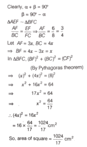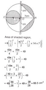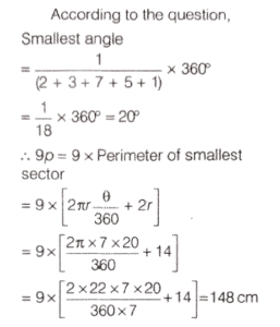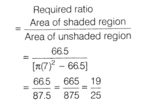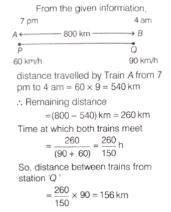 SOLVED PAPER 2024 (CDS) (I) (Mathematics)Total Questions: 10071. (Question 71 and 72) Consider the following for the next two (02) items that follow: In a Pie-diagram (with radius 7cm), the central angles of the sectors are in the ratio 2 : 3 : 7 : 5 : 1. (Take π = 22/7)If P is the area of the smallest sector and Q is the area of the largest sector, then what is P + Q equal to ?(a) 88/3 cm²(b) 77/3 cm²(c) 149/6 cm²(d) 616/9 cm²Correct Answer: (d) 616/9 cm²Solution: 72. If p is the perimeter of the smallest sector, then what is the value of 9p?(a) 142 cm(b) 148 cm(c) 156 cm(d) 221 cmCorrect Answer: (b) 148 cmSolution:73. How far from station Q will the two trains meet ?(a) 104 km(b) 144 km(c) 156 km(d) 504 kmCorrect Answer: (c) 156 kmSolution:74. At what time will the two trains meet?(a) 5 : 28 am(b) 5 : 44 am(c) 4 : 56 am(d) 6 : 24 amCorrect Answer: (b) 5 : 44 amSolution:Time of meet for both trains = 4 am + 260/250 h = 4 am + 1.44 h = 5.44 h75. If the lengths of the two trains A and B are 400 m and 500 m respectively, then what is the time taken by them to cross each other?(a) 21.6 sec(b) 18.2 sec(c) 17.4 sec(d) 15.4 secCorrect Answer: (a) 21.6 secSolution:76. (Question 76-78) Consider the following for the next three (03) items that follow: A triangle CEF is drawn inside a square ABCD as shown in the figure given below. Given: CF = 8cm EF = 6 cm and CE = 10 cm.What is the area of the square?(a) 512/17 cm²(b) 625/13 cm²(c) 1024/17 cm²(d) 1296/13 cm²Correct Answer: (c) 1024/17 cm²Solution: 77. What is tanα + tanβ equal to ?(a) 13/16(b) 15/16(c) 17/16(d) 17/4Correct Answer: (d) 17/4Solution: 78. What is the area of triangle CDE?(a) 416/17 cm²(b) 312/13 cm²(c) 208/17 cm²(d) 156/13 cm²Correct Answer: (a) 416/17 cm²Solution:79. (Question 79 and 80) Consider the following for the next two (02) items that follow : ABCD is a circle with centre O and taking OC as a diameter a circle is drawn as shown in the figure given below. Let OB = 7 cm (Take, π = 22/7) What is the area of the shaded region?(a) 38.5 cm²(b) 48 cm²(c) 52.5 cm²(d) 66.5 cm²Correct Answer: (d) 66.5 cm²Solution:80. What is the ratio of the area of the shaded region to the area of the non-shaded region ?(a) 19/25(b) 18/25(c) 17/25(d) 16/25Correct Answer: (a) 19/25Solution:Submit Quiz« Previous12345678910Next »