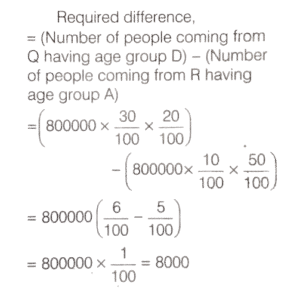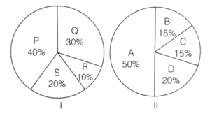 The following pie-chart- I shows the people migrating to Delhi from different Indian States (P, Q and R are three different States and S is the combined group of other states) and pie- chart-II indicates the different age groups, A, B, C and D of these migrating people for each state.