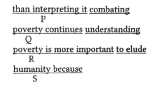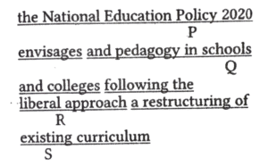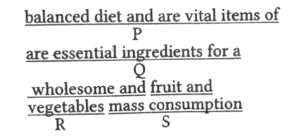 SOLVED PAPER 2024 (CDS) (II) (English)Total Questions: 12021. (Questions 21-30) Each of the following items in this section consists of a sentence, parts of which have been jumbled. These parts have been labelled as P, Q, R and S. Given below each sentence are four sequences, namely (a), (b), (c) and (d). You are required to re-arrange the jumbled parts of the sentence and mark your response accordingly.(a) PSQR(b) PQSRRSQP(d) RQSPCorrect Answer: (a) PSQRSolution:The correct sequence is PSQR.22. Read the statement.(a) QPRS(b) QRPS(c) SRQP(d) SPRQCorrect Answer: (c) SRQPSolution:The correct sequence is SRQP.23. Read the statement.(a) RQPS(b) RPSQ(c) SRPQ(d) SQRPCorrect Answer: (a) RQPSSolution:The correct sequence is RQPS.24. Read the statement.(a) SRPQ(b) SPQR(c) PRSQ(d) RSPQCorrect Answer: (b) SPQRSolution:The correct sequence is SPQR.25. Read the statement.(a) QPSR(b) RSQP(c) PRSQ(d) SPQRCorrect Answer: (b) RSQPSolution:The correct sequence is RSQP.26. Read the statement.(a) QSRP(b) PRSQ(c) SRQP(d) RSPQCorrect Answer: (a) QSRPSolution:The correct sequence is QSRP.27. Read the statement.(a) SRQP(b) PQRS(c) RPSQ(d) RQSPCorrect Answer: (c) RPSQSolution:The correct sequence is RPSQ.28. Read the statement.(a) RSPQ(b) SPRQ(c) QSRP(d) PQRSCorrect Answer: (c) QSRPSolution:The correct sequence is QSRP.29. Read the statement.(a) RQPS(b) RSQP(c) PQRS(d) PQSRCorrect Answer: (a) RQPSSolution:The correct sequence is ROPS.30. Read the statement.(a) RPSQ(b) QSPR(c) PSQR(d) PRSQCorrect Answer: (b) QSPRSolution:The correct sequence is QSPR.Submit Quiz« Previous123456789101112Next »