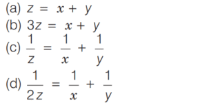 SPEED, TIME AND DISTANCE (CDS)Total Questions: 5451. The distance between two points ( A and B) is 110 km. X starts running from point A at a speed of 60 km/h and Y starts running from point B at a speed of 40 km/h at the same time. They meet at a point C, somewhere on the line AB. What is the ratio of AC to BC? [2014 (II) Evening Shift ](a) 3 : 2(b) 2 : 3(c) 3 : 4(d) 4 : 3Correct Answer: (a) 3 : 2Solution:Distance between two points = 110km52. A man rides one-third of the distance from A to B at the rate of x km/h and the remainder at the rate of 2 y km/h. If he had travelled at a uniform rate of 6z km/h, then he could have ridden from A to B and back again in the same time. Which one of the following is correct? [2014 (II) Evening Shift ](a)(b)(c)(d)Correct Answer: (c)Solution:Let the total distance be d. 53. A train travels at a speed of 40 km/h and another train at a speed of 20 m/s. What is the ratio of speed of the first train to that of the second train? [2014 (II) Evening Shift ](a) 2 : 1(b) 5 : 9(c) 5 : 3(d) 9 : 5Correct Answer: (b) 5 : 9Solution:Given, speed of a train = 40 km/h54. A train takes 9 s to cross a pole. If the speed of the train is 48 km/h, then the length of the train is [2014 (I) Morning Shift](a) 150 m(b) 120 m(c) 90 m(d) 80 mCorrect Answer: (b) 120 mSolution:Let the length of the train be x m.Submit Quiz« Previous123456