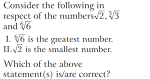 SQUARE ROOTS AND SURDS (CDS)Total Questions: 2221. When a ball bounces, it rises to 2/3 of the height from which it fell. If the ball is dropped from a height of 36 m, then how high will it rise at the third bounce? [2015 (I) Morning Shift](a)(b)(c)(d)Correct Answer: (b)Solution:After first bounce, height of ball22. Solve the following equation [2014 (I) Morning Shift](a) Only I(b) Only II(c) Both I and II(d) Neither I nor IICorrect Answer: (d) Neither I nor IISolution:Submit Quiz« Previous123