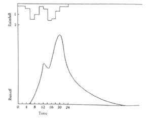 Fig.: Rainfall hyetograph and associated runoff hydrograph.