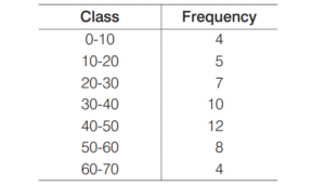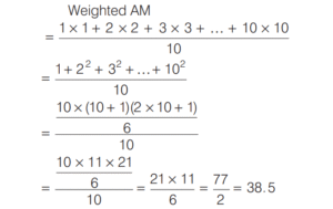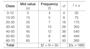 STATISTICS (CDS)Total Questions: 6341. Suppose xᵢ = λⁱ for 0 ≤ i ≤ 10 , where λ > 1. Which one of the following is correct?(a) AM < Median(b) GM < Median(c) GM = Median(d) AM = MedianCorrect Answer: (c) GM = MedianSolution:42. Suppose xᵢ = 1/i for 1, 2, 3 ,...,11. Which one of the following is not correct?(a) AM > 1/6(b) GM > 1/6(c) HM > 1/6(d) Median = HMCorrect Answer: (d) Median = HMSolution:43. If each of n numbers xᵢ = i ( i = 1, 2, 3 ,...,n) is replaced by (i + 1)xᵢ , then the new mean is(a)(b)(c)(d)Correct Answer: (d)Solution:44. The weighted arithmetic mean of first 10 natural numbers whose weights are equal to the corresponding numbers is equal to(a) 7(b) 14(c) 35(d) 38 5.Correct Answer: (d) 38 5.Solution:45. (Questions 45-48) Consider the following frequency distribution.What is the mean of the distribution?(a) 37.2(b) 38.1(c) 39.2(d) 40.1Correct Answer: (a) 37.2Solution:(Questions 45-48) 46. What is the median class?(a) 20-30(b) 30-40(c) 40-50(d) 50-60Correct Answer: (b) 30-40Solution: 47. What is the median of the distribution?(a) 37(b) 38(c) 39(d) 40Correct Answer: (c) 39Solution: 48. What is the mode of the distribution?(a) 38.33(b) 40.66(c) 42.66(d) 43.33Correct Answer: (d) 43.33Solution: 49. There are five parties A, B, C, D and E in an election. Out of total 100000 votes cast, 36000 were cast to party A, 24000 to to party B, 18000 to party C, 7000 to party D and rest to party E. What angle will be allocated for party E in the pie-chart?(a) 15°(b) 54°(c) 60°(d) 72°Correct Answer: (b) 54°Solution:50. The class which has maximum frequency is known as(a) median class(b) mean class(c) modal class(d) None of theseCorrect Answer: (c) modal classSolution:The class which has maximum frequency is known as modal class.Submit Quiz« Previous1234567Next »