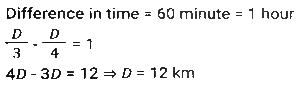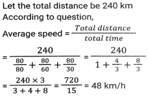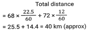 Time, Speed and Distance (Part-3)Total Questions: 501. To reach at a destination, D takes 45 minutes if he drives at a speed of 60 km/h. Due to some urgency, he is to reach the destination in 30 minutes. What should be his speed in km/h? [SSC CHSL 05/07/2024 (2nd Shift)](a) 90(b) 75(c) 60(d) 80Correct Answer: (a) 90Solution:2. A motorcyclist rides his motorcycle at a speed of 90 km/hr in the first one hour and the next two hours at a speed of 120 km/hr. Find the average speed of the rider. [SSC CHSL 05/07/2024 (3rd Shift)](a) 115 km/hr(b) 120 km/hr(c) 105 km/hr(d) 110 km/hrCorrect Answer: (d) 110 km/hrSolution:3. A train 550 metres long is running at a speed of 78 km/h. How many seconds will it take to cross a 350 metres long train running in the opposite direction at a speed of 30 km/h? [SSC CHSL 05/07/2024 (3rd Shift)](a) 50 seconds(b) 20 seconds(c) 40 seconds(d) 30 secondsCorrect Answer: (d) 30 secondsSolution:4. A person divides his total route of journey into three equal parts and decides to travel the three parts at the speeds of 80 km/h, 60 km/h and 30 km/h, respectively. What is the average speed during the journey? [SSC CHSL 05/07/2024 (4th Shift)](a) 49 km/h(b) 40 km/h(c) 45 km/h(d) 48 km/hCorrect Answer: (d) 48 km/hSolution:5. A person travels from one place to another at 60 km/hr and returns at 75 km/hr. If the total time taken is 6 hours, then find the total distance travelled. [SSC CHSL 05/07/2024 (4th Shift)](a) 250 km(b) 240 km(c) 400 km(d) 300 kmCorrect Answer: (c) 400 kmSolution:6. A part of the journey is covered in 22.5 minutes at a speed of 68 km/h and the remaining part in 12 minutes at a speed of 72 km/h. The total distance of the journey is (to the nearest integer): [SSC CHSL 09/07/2024 (2nd Shift)](a) 35 km(b) 42 km(c) 38 km(d) 40 kmCorrect Answer: (d) 40 kmSolution:7. If Tanya walks at the speed of 6 km/h, she misses a train by 2 minutes. However, if she walks at the speed of 8 km/h, she reaches the station 3 minutes before the arrival of the train. The distance covered by Tanya to reach the station is: [SSC CHSL 09/07/2024 (3rd Shift)](a) 2.5 km(b) 2.75 km(c) 3 km(d) 2 kmCorrect Answer: (d) 2 kmSolution:8. The speed of a thief is times 4/5 the speed of a policeman. The thief covers a distance of 6 km before he was caught by the policeman in 30 minutes. Initially, what was the distance between the policeman and the thief in km? [SSC CHSL 09/07/2024 (4th Shift)](a) 1.5(b) 1.2(c) 1.0(d) 0.8Correct Answer: (a) 1.5Solution:9. A person reaches his destination 30 minutes late, if his speed is 3 km/h, and reaches 30 minutes before time if his speed is 4 km/h. Find the distance of his destination from his starting point. [SSC CHSL 10/07/2024 (1st Shift)](a) 11 km(b) 14 km(c) 12 km(d) 13 kmCorrect Answer: (c) 12 kmSolution:10. A policeman was asked to chase a thief. Before the policeman started the chase, he realised that the thief was 200 metres ahead of him and was running at a speed of 16 km/h. The policeman started the chase at a speed of 20 km/h. How far will the thief run before he is overtaken by the policeman ? [SSC CHSL 10/07/2024 (2nd Shift)](a) 600 m(b) 700m(c) 800m(d) 1000 mCorrect Answer: (c) 800mSolution:Submit Quiz12345Next »