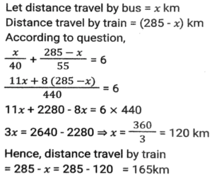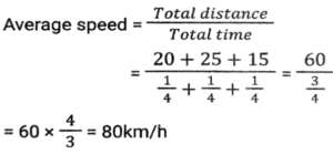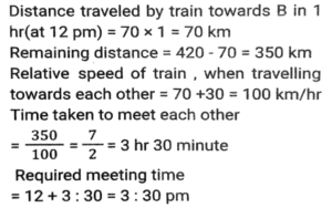 Time, Speed and Distance (Part-3)Total Questions: 5011. With a uniform speed, a car covers a distance in 16 hours. Had the speed been increased by 20 km/h, the same distance would have been covered in 12 hours. The total distance covered by the car is: [SSC CHSL 10/07/2024 (3rd Shift)](a) 1080 km(b) 480 km(c) 720 km(d) 960 kmCorrect Answer: (d) 960 kmSolution:12. By what percentage should a racer increase the speed to reduce the time by 25% to cover a fixed distance? [SSC CHSL 11/07/2024 (1st Shift)](a) 41 %(b) 33⅓ %(c) 31 %(d) 37⅓ %Correct Answer: (b) 33⅓ %Solution:13. A and B are two stations 420 km apart. A train starts from A at 11 am and travels towards B at the speed of 70 kmph. Another train starts from B at 12 noon and travels towards A at the speed of 30 kmph. At what time do they meet? [SSC CHSL 11/07/2024 (2nd Shift)](a) 3.30 pm(b) 1.30 pm(c) 2 pm(d) 3 pmCorrect Answer: (a) 3.30 pmSolution:14. Tom travelled 285 km in 6 hours. In his total travelling, he travelled the first part by busat 40 km/hr and the remaining part by train at 55 km/hr. How much distance has he travelled by train? [SSC CHSL 11/07/2024 (4th Shift)](a) 155 km(b) 120 km(c) 135 km(d) 165 kmCorrect Answer: (d) 165 kmSolution:15. A car covers 20 km in the first quarter of an hour, 25 km in the second quarter of that hour and 15 km in the third quarter. The average speed of the car (in km/h) over the entire journey is: [SSC CPO 27/06/2024 (1st Shift)](a) 70(b) 75(c) 80(d) 65Correct Answer: (c) 80Solution:16. Two cars run to a place at the speeds of 45 km/h and 55 km/h, respectively. If the second car takes 40 minutes less than the first for the journey, then what is the length of the journey (in km)? [SSC CPO 27/06/2024 (2nd Shift)](a) 145(b) 165(c) 180(d) 99Correct Answer: (b) 165Solution:17. A 255-m long train is running at a speed of 72 km/h. It crosses a platform of length 745 m in: [SSC CPO 27/06/2024 (2nd Shift)](a) 53 seconds(b) 40 seconds(c) 50 seconds(d) 51 secondsCorrect Answer: (c) 50 secondsSolution:18. A bus covers the first 50 km of its journey in 40 minutes and covers the remaining 75 km in 40 minutes. What is the average speed (in km/h) of the bus? [SSC CPO 27/06/2024 (2nd Shift)](a) 95¼(b) 93¾(c) 101¼(d) 105¾Correct Answer: (b) 93¾Solution:19. R reaches office from home in 30 minutes and comes back in 20 minutes. The distance to his office from home is 12.5 km. What is his average speed (in km / h ) from home to office and then back home? [SSC CPO 27/06/2024 (3rd Shift)](a) 20(b) 25(c) 60(d) 30Correct Answer: (d) 30Solution:20. A man travels some distance at a speed of 12 km/h and returns at a speed of 8 km/h. If the total time taken by him is 3 hours and 45 minutes, then the total distance (in km) travelled is: [SSC CPO 27/06/2024 (3rd Shift)](a) 32(b) 42(c) 36(d) 24Correct Answer: (c) 36Solution:Submit Quiz« Previous12345Next »