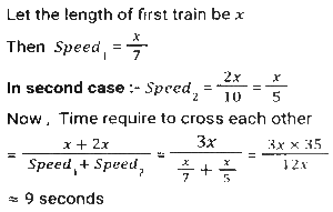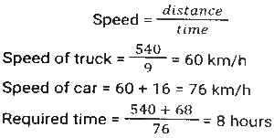 Time, Speed and Distance (Part-5)Total Questions: 5021. Two motorists start together to travel to a certain destination, one at the speed of 4 km/h and the other at the speed of 6 km/h. Find the distance travelled by them (in km) if the motorist travelling at 4 km/h arrives half an hour after the other motorist. [SSC CGL 27/07/2023 (1st shift)](a) 8(b) 5(c) 6(d) 4Correct Answer: (c) 6Solution:22. A certain distance is covered by a person at a certain speed. If another person covers 25% of the distance in triple the time, the ratio of the speed of the first person to that of the second person is: [SSC CGL 27/07/2023 (2nd shift)](a) 1:6(b) 1:12(c) 6:1(d) 12:1Correct Answer: (d) 12:1Solution:23. A train takes 7 seconds to pass man standing on a platform and another train whose length is double that of the first train, and moving in the opposite direction, takes 10 seconds to pass him. The time taken (in seconds, to the nearest integer) by the trains to pass each other will be: [Graduate Level 30/06/2023 (Shift - 1)](a) 8(b) 9(c) 10(d) 12Correct Answer: (b) 9Solution:24. A goods train, travelling at constant speed, crossed two persons walking in the same direction (as that of the train) in 11.6 seconds and 11.8 seconds, respectively. The first person was walking at 5.85 km/h, while the second was walking at 6.3 km/h. What was the speed of the train (in km/h)? [Higher Secondary 27/06/2023 (Shift - 3)](a) 32.5(b) 32.6(c) 32.4(d) 32.2Correct Answer: (c) 32.4Solution:25. A bus is running at a speed of 60 km/h to cover a distance in 50 min. To reduce the time of the journey to 20 min, at what speed (in km/h) should the bus run? [Matriculation Level 27/06/2023 (Shift - 2)](a) 120(b) 90(c) 140(d) 150Correct Answer: (d) 150Solution:26. A bus covers a distance of 45 km in 45 minutes. If its speed is decreased by 20 km/hr, then what will be the time taken by it to cover the same distance? [SSC MTS 02/05/2023 (Morning)](a) 62.5 minutes(b) 67.5 minutes(c) 78.5 minutes(d) 72.5 minutesCorrect Answer: (b) 67.5 minutesSolution:27. A man takes 6 hours to go to a place and come back by walking both the ways. He could have saved 2 hours by riding both the ways. The distance covered in the whole journey is 20 miles. What is the average speed for the whole journey if he goes by walking and comes back by riding? [SSC MTS 02/05/2023 (Morning)](a) 8 miles/hr(b) 5 miles/hr(c) 6 miles/hr(d) 4 miles/hrCorrect Answer: (d) 4 miles/hrSolution:28. If Aman travels with 12.5 percent less speed of his usual speed, then he will reach 9 minutes late. What is the usual time taken by him? [SSC MTS 04/05/2023 (Afternoon)](a) 63 minutes(b) 70 minutes(c) 56 minutes(d) 49 minutesCorrect Answer: (a) 63 minutesSolution:29. A person walks 10 km at a speed of 2.5 km per hour, then runs 10 km at a speed of 5 km per hour and then goes 30 km by bus at the speed of 30 km per hour. What is the average speed of the man? (in kmph) [SSC MTS 08/05/2023 (Morning)](a) 9(b) 8.25(c) 7.14(d) 7Correct Answer: (c) 7.14Solution:30. A truck covers a distance of 540 km at a certain speed in 9 hours. How much time (in hours) would a car take at an average speed which is 16 km/hr more than that of the speed of the truck to cover a distance which is 68 km more than that travelled by the truck? [SSC MTS 08/05/2023 (Evening)](a) 10(b) 8(c) 6(d) 12Correct Answer: (b) 8Solution:Submit Quiz« Previous12345Next »