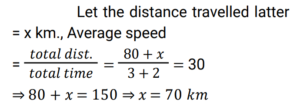 1. A man travels 80 km in three hours. He further travels for two more hours. Find the distance travelled in the latter two hours, if his average speed for the entire journey is 30 km/h. [Group D 17/08/2022 (Evening) ]