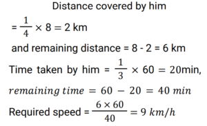 3. A person has to cover a distance of 8 km in 1 hour. If he covers one-fourth of the distance in one-third of the total time, then what should his speed (in km/h) be to cover the remaining distance in the remaining time so that the person reaches the destination exactly on time? [Group D 23/08/2022 (Afternoon) ]